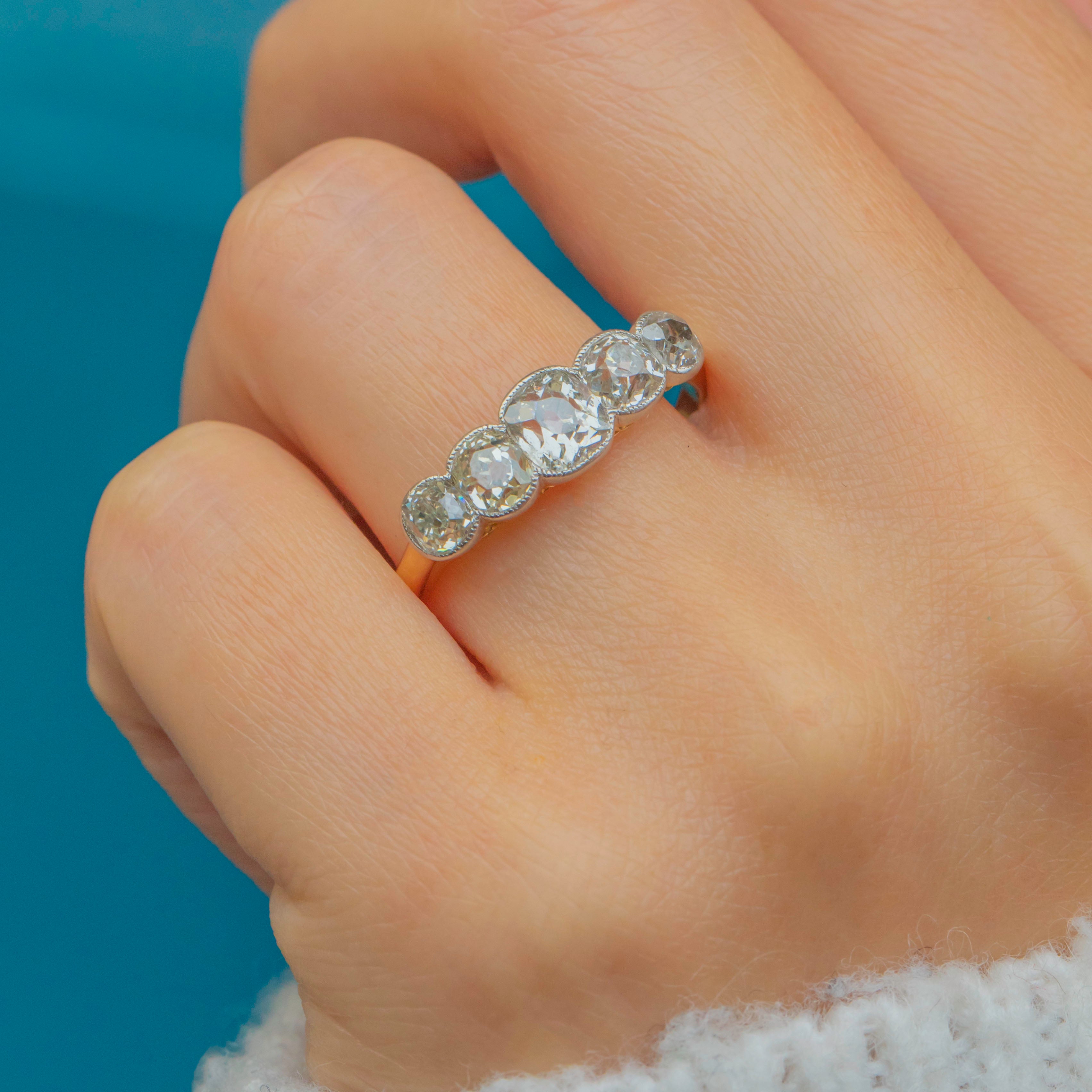 1.70ct Victorian 18ct Gold Old Mine Cut Diamond Five-Stone Ring