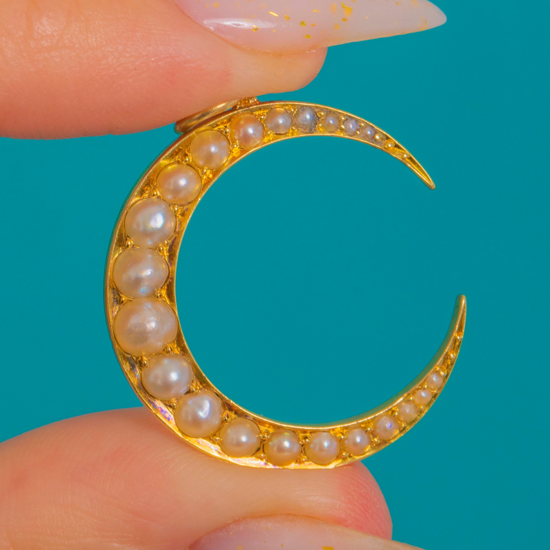 Victorian 18ct Gold Pearl Crescent Moon Pendant Item added