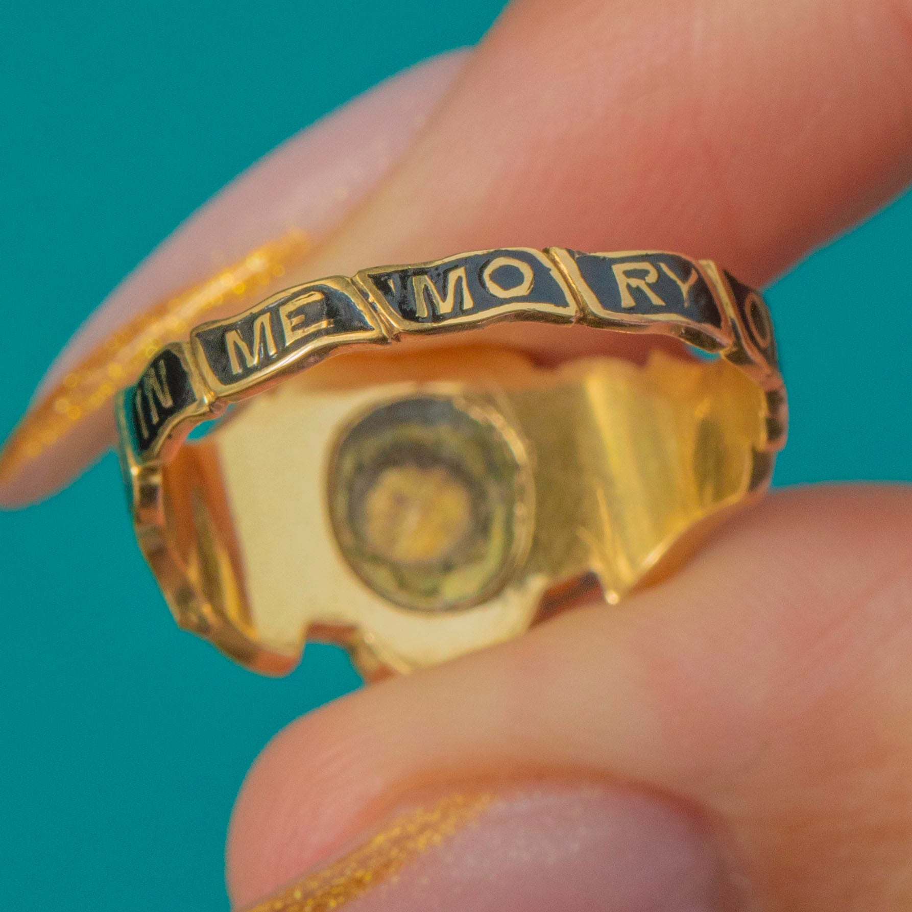 The Enamel is pristine, which is exceptionally uncommon for rings of this age. There would once have been a small glass compartment to the rear, now absent, but the ring remains strong, wearable, and wonderfully intact for its period.