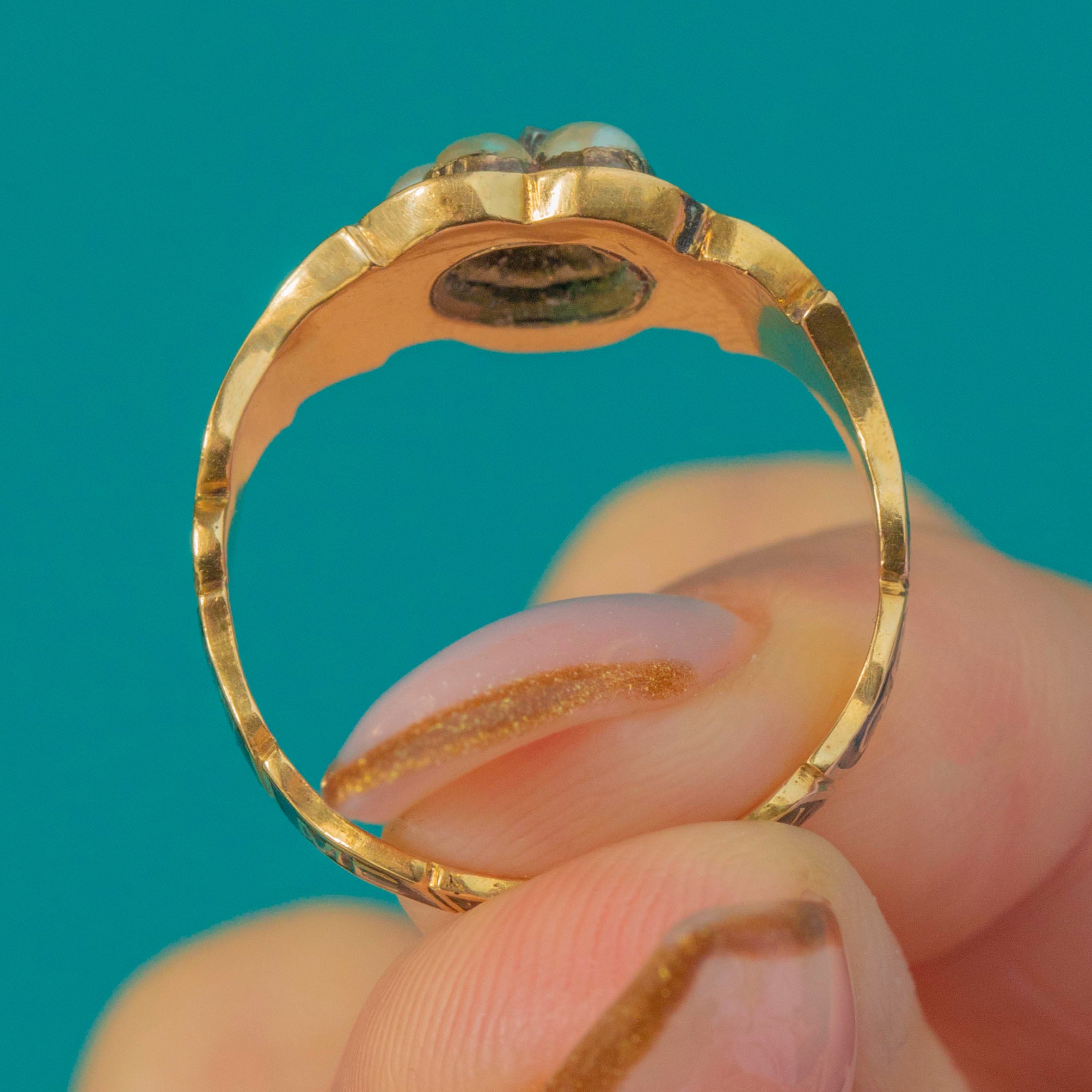 Victorian 18ct Gold Pearl Diamond Mourning Ring c.1846 Item added