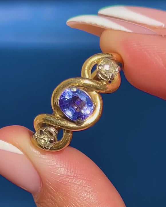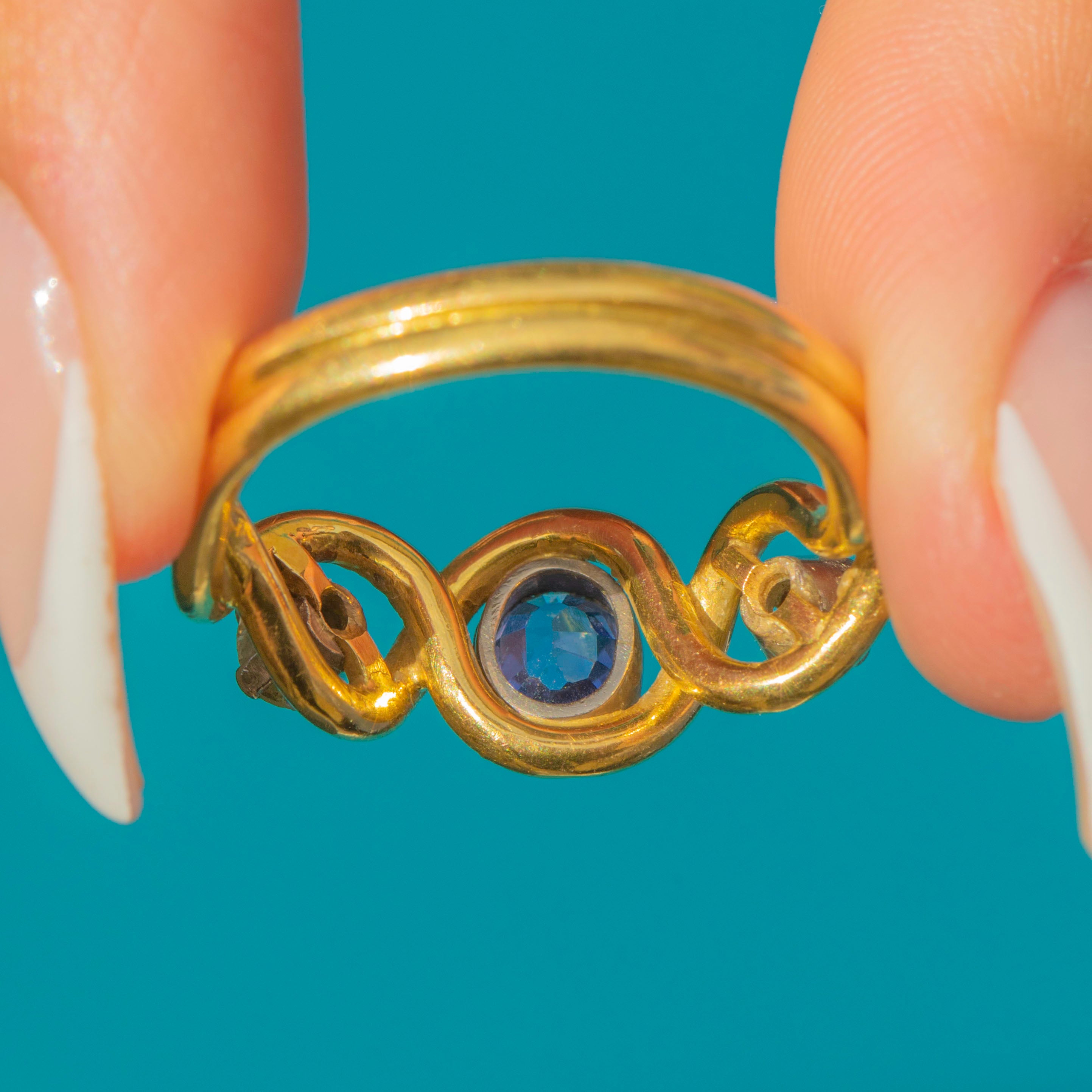 Victorian 18ct Gold Sapphire & Old Mine Cut Diamond Twist Ring, c.1900