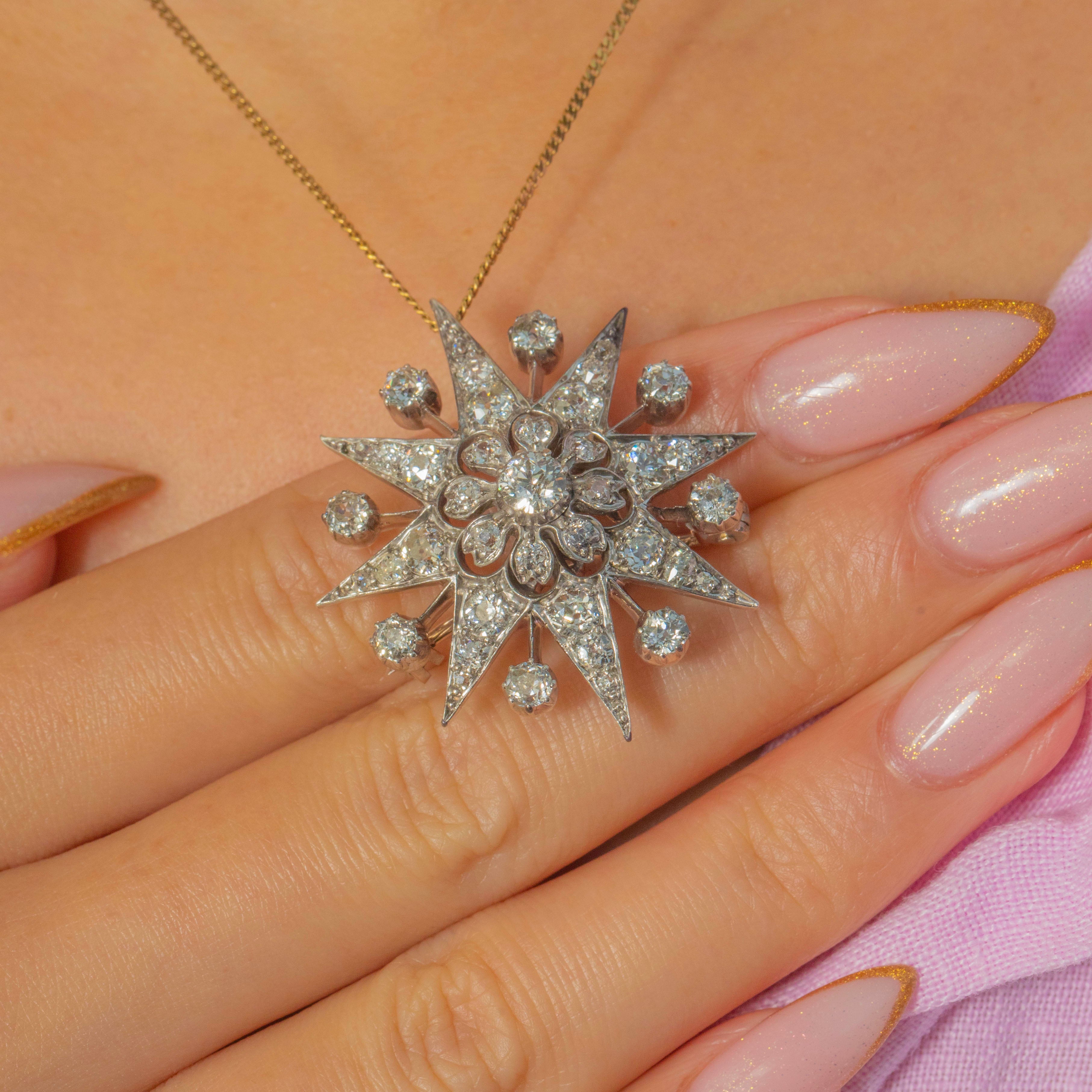 Victorian 2.75ct Diamond Starburst Pendant / Brooch c.1890 Item added
