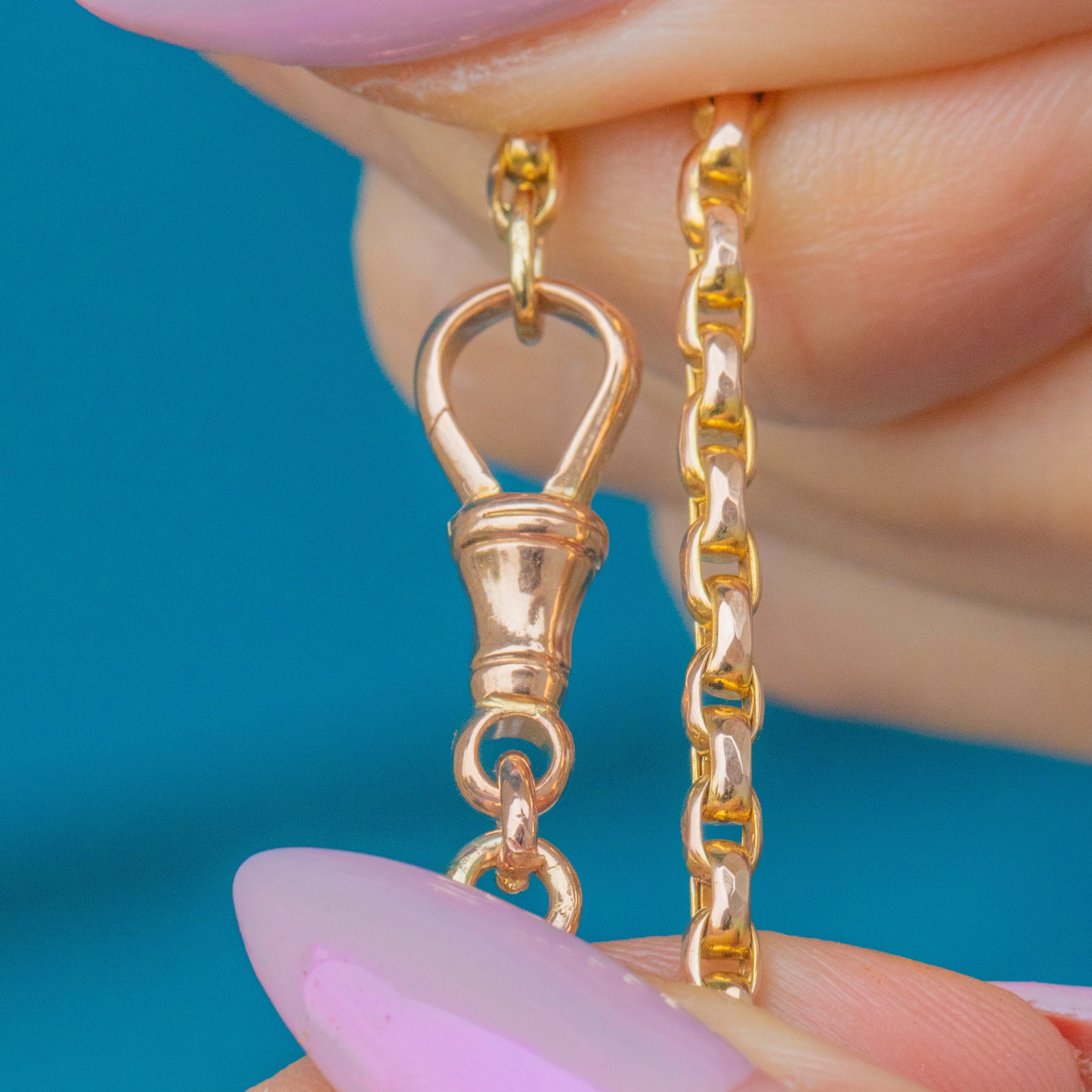 A gorgeous, medium-weight antique Victorian 9ct Gold chain, fitted with a classic dog-clip clasp, perfect for displaying pendants, lockets, or charms. The links are beautifully made with a soft antique glow and a bright polished finish, giving the chain a rich golden hue and satisfying weight.