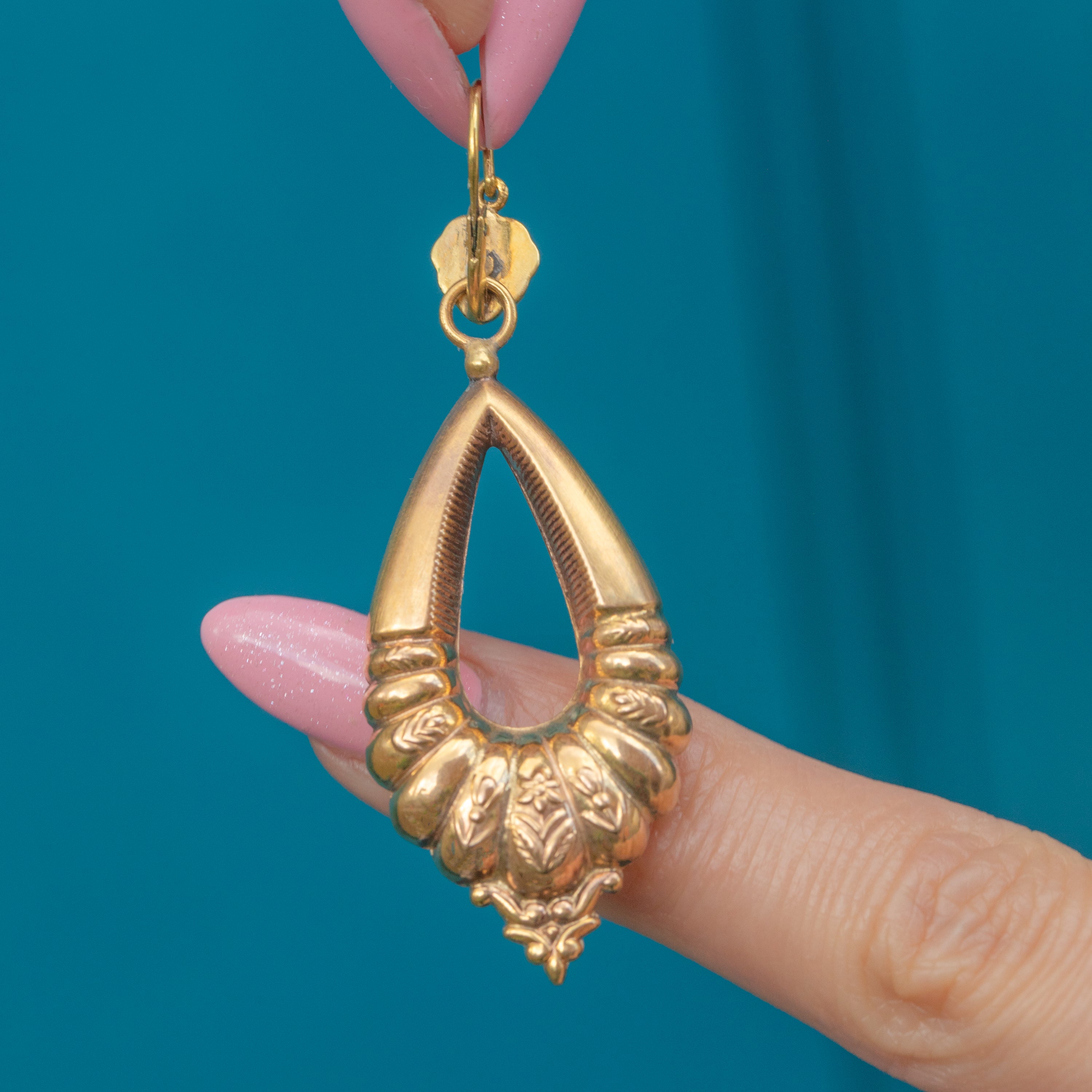 If you have a penchant for unique treasures, these Victorian 9ct Gold Coral heart day and night earrings are an essential for your collection! Exquisitely crafted from luscious 9ct Gold, the earrings boast ornate detailing and floral accents across their impressive drops.