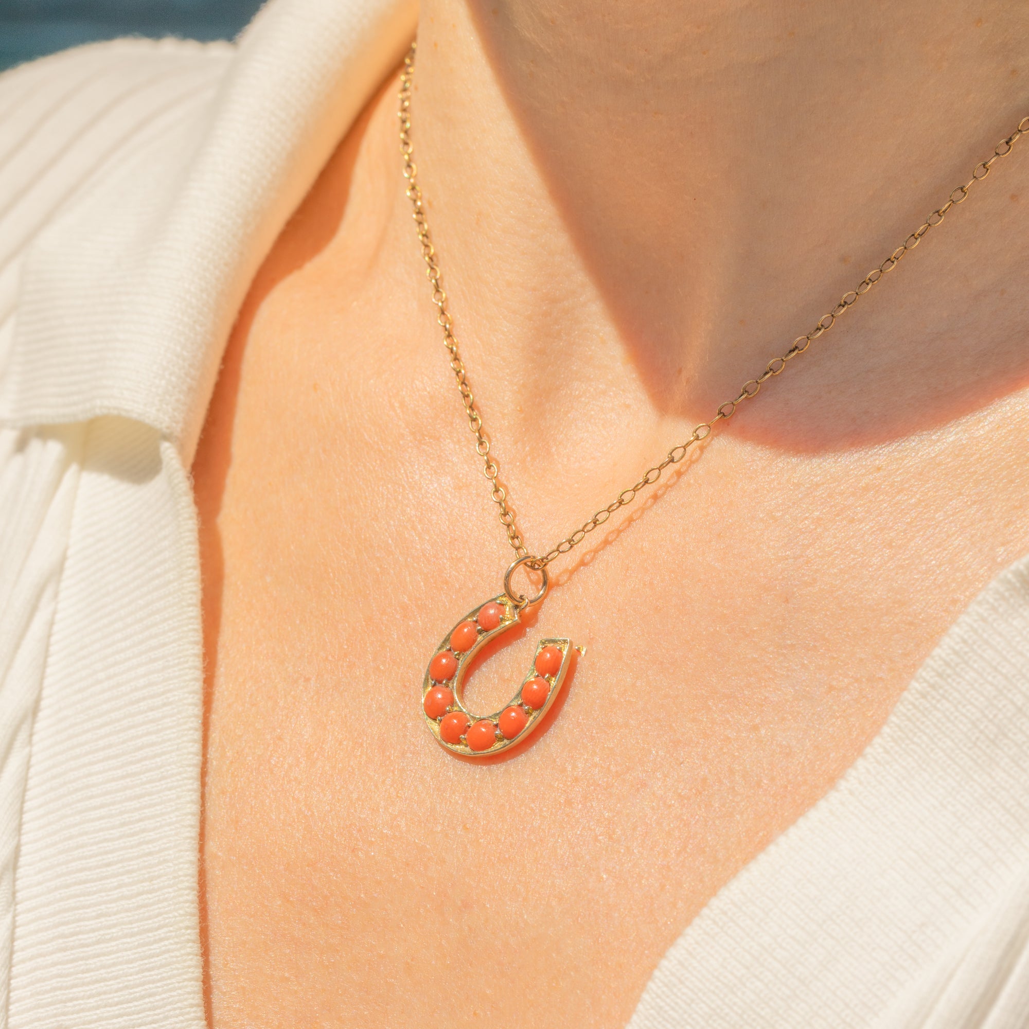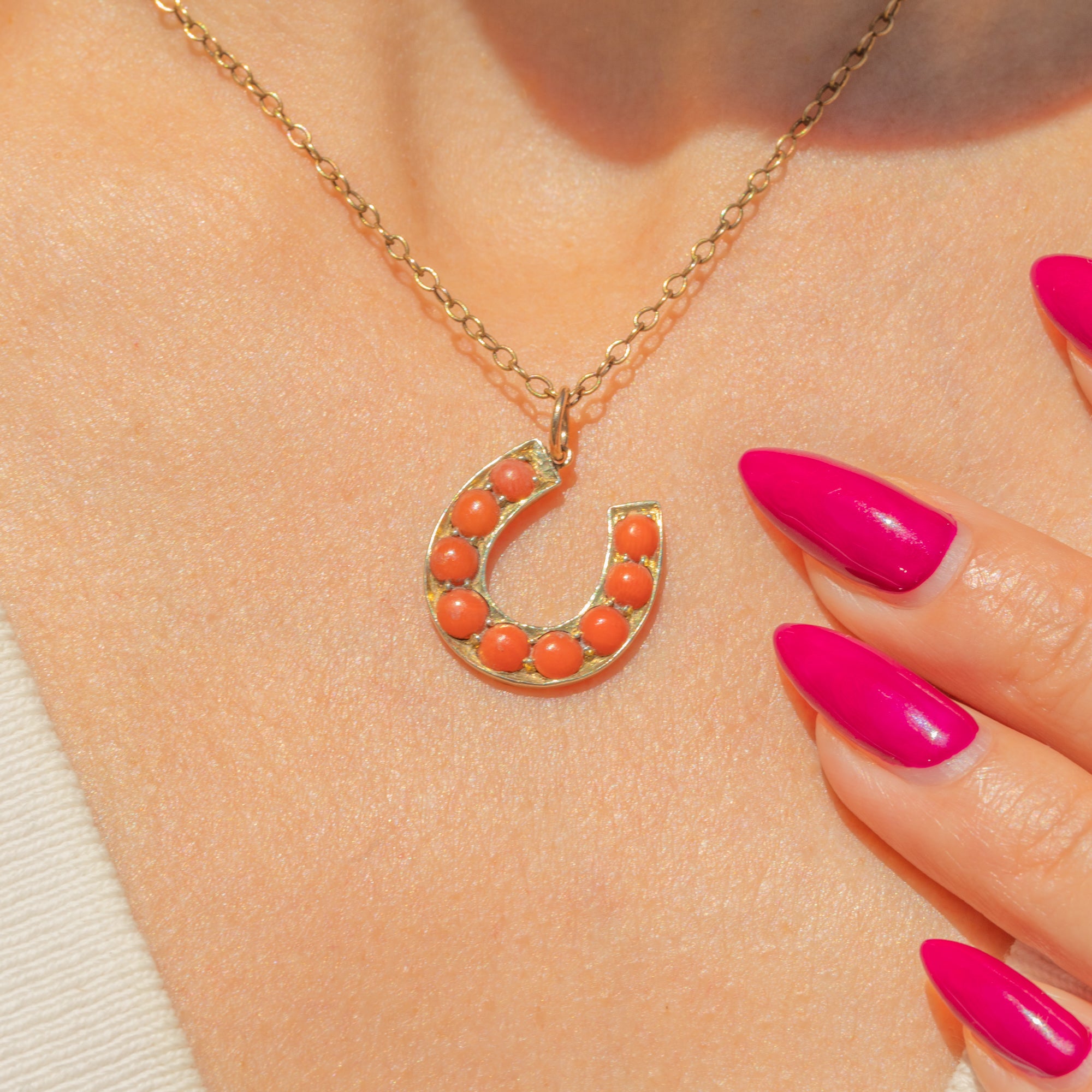 This antique Coral horseshoe charm is the perfect lucky charm to wear day in and day out! Inlaid with gorgeous Corals, this adorable charm is vibrant with colour and character!