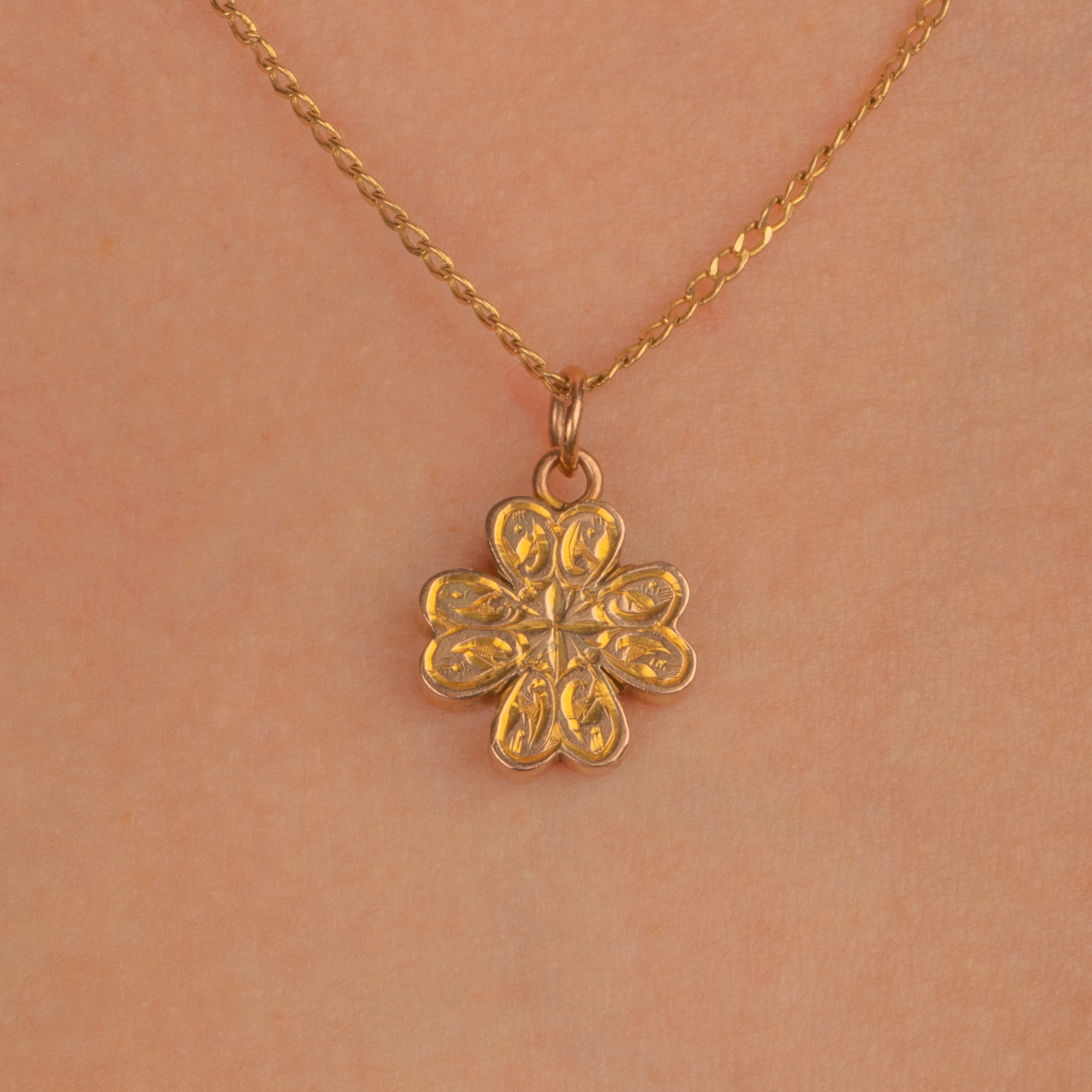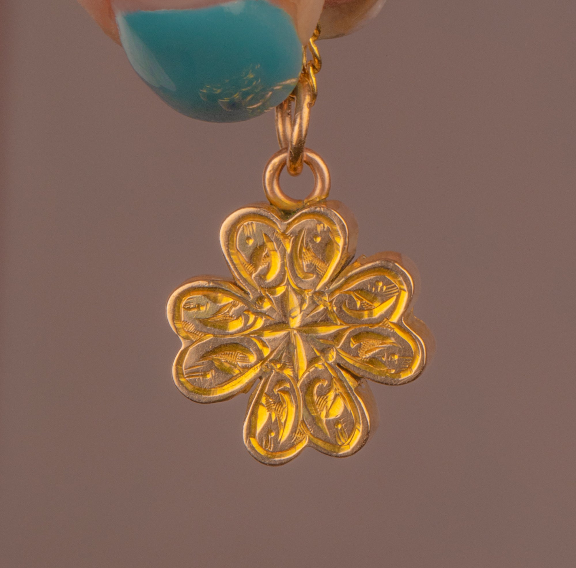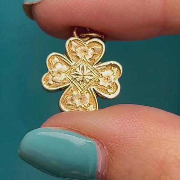 Victorian 9ct Gold Engraved Four Leaf Clover Charm
