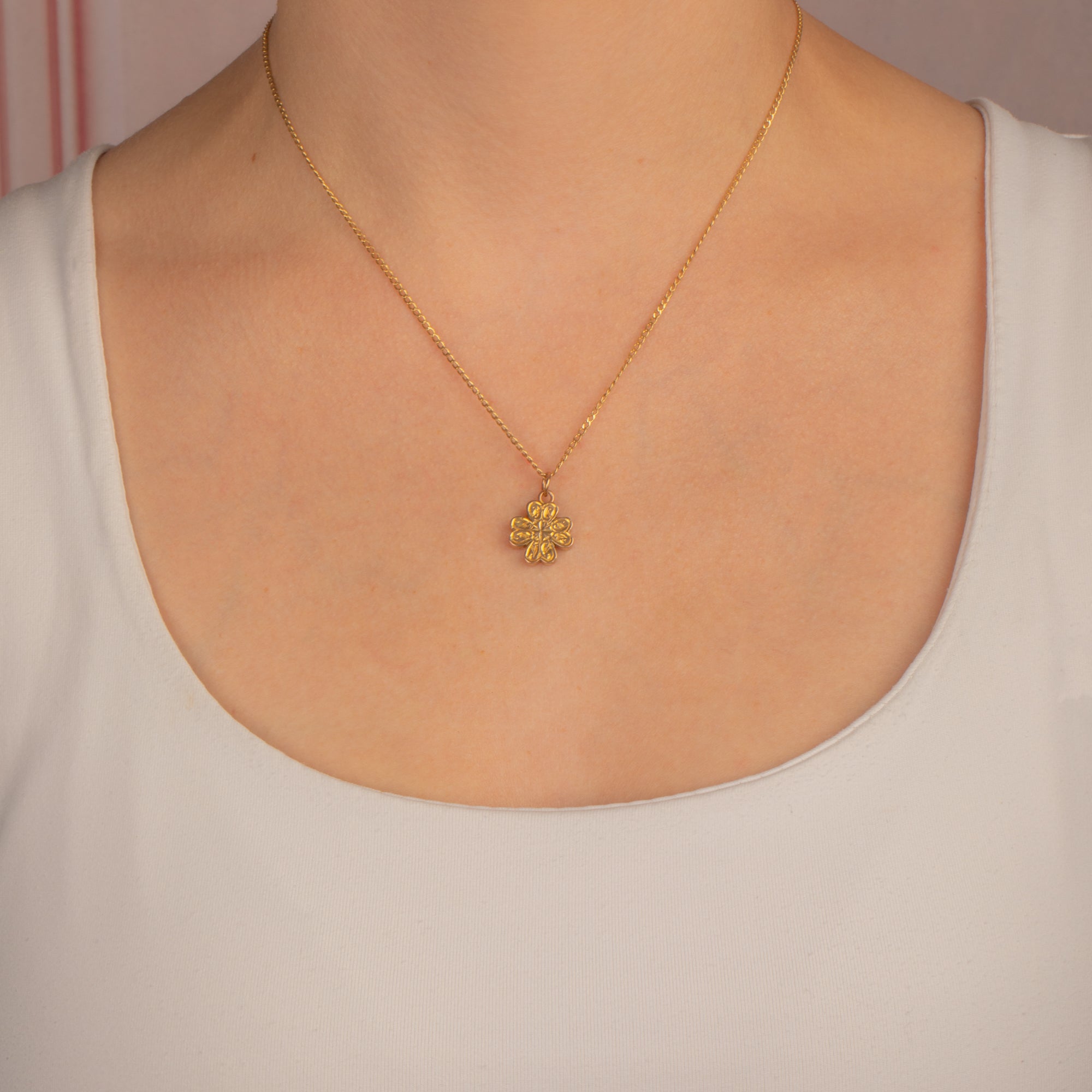 Crafted in a rich 9ct Gold embellished with intricate engravings, we love the way this shimmering Clover charm gleams under sunlight. Perhaps this could be a touching sentimental gift for a loved one about to take exams or embark on new travels!