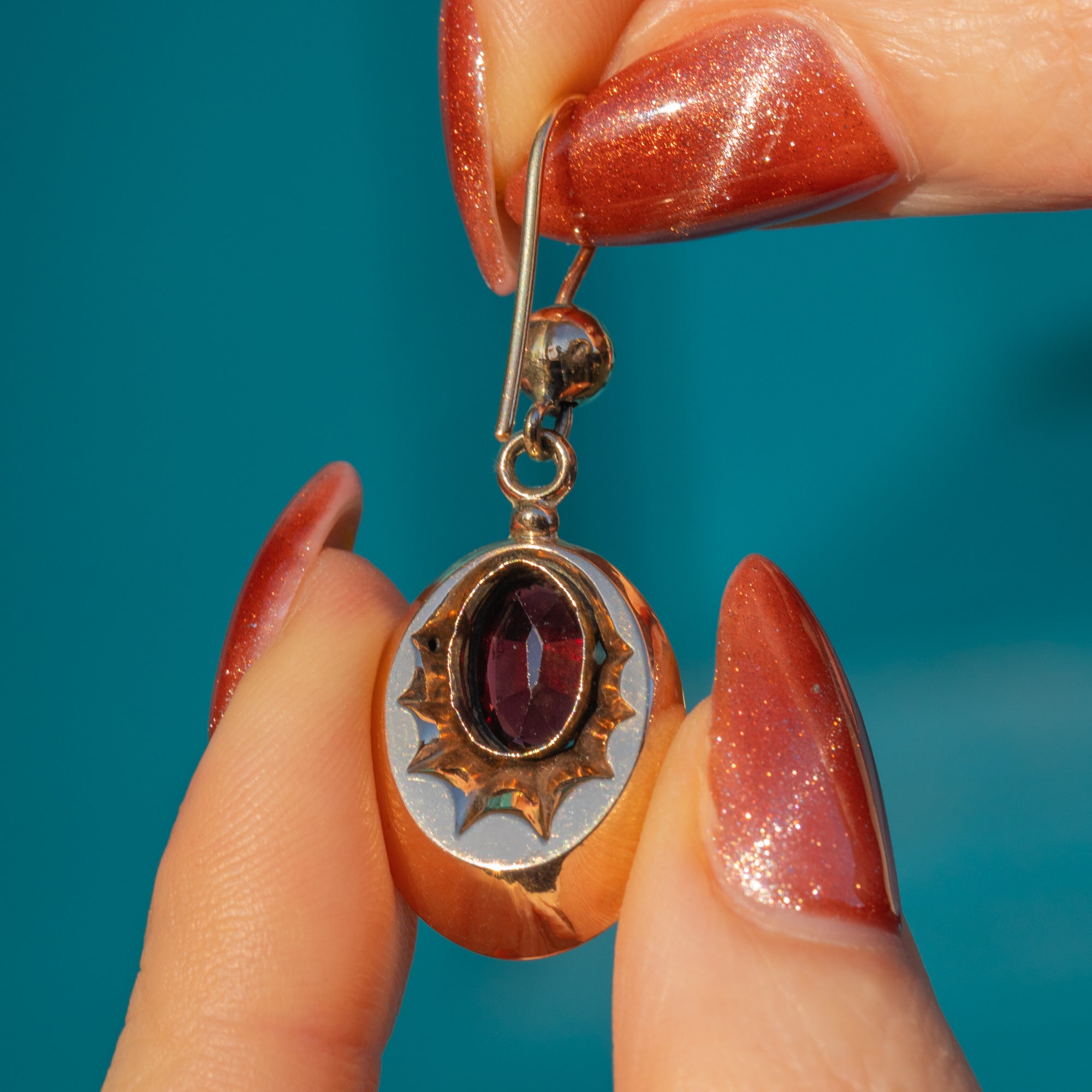 These Victorian 9ct Gold fancy Garnet earrings are divine. Each set with a deep crimson-hued Garnet, these pretties are so unique!