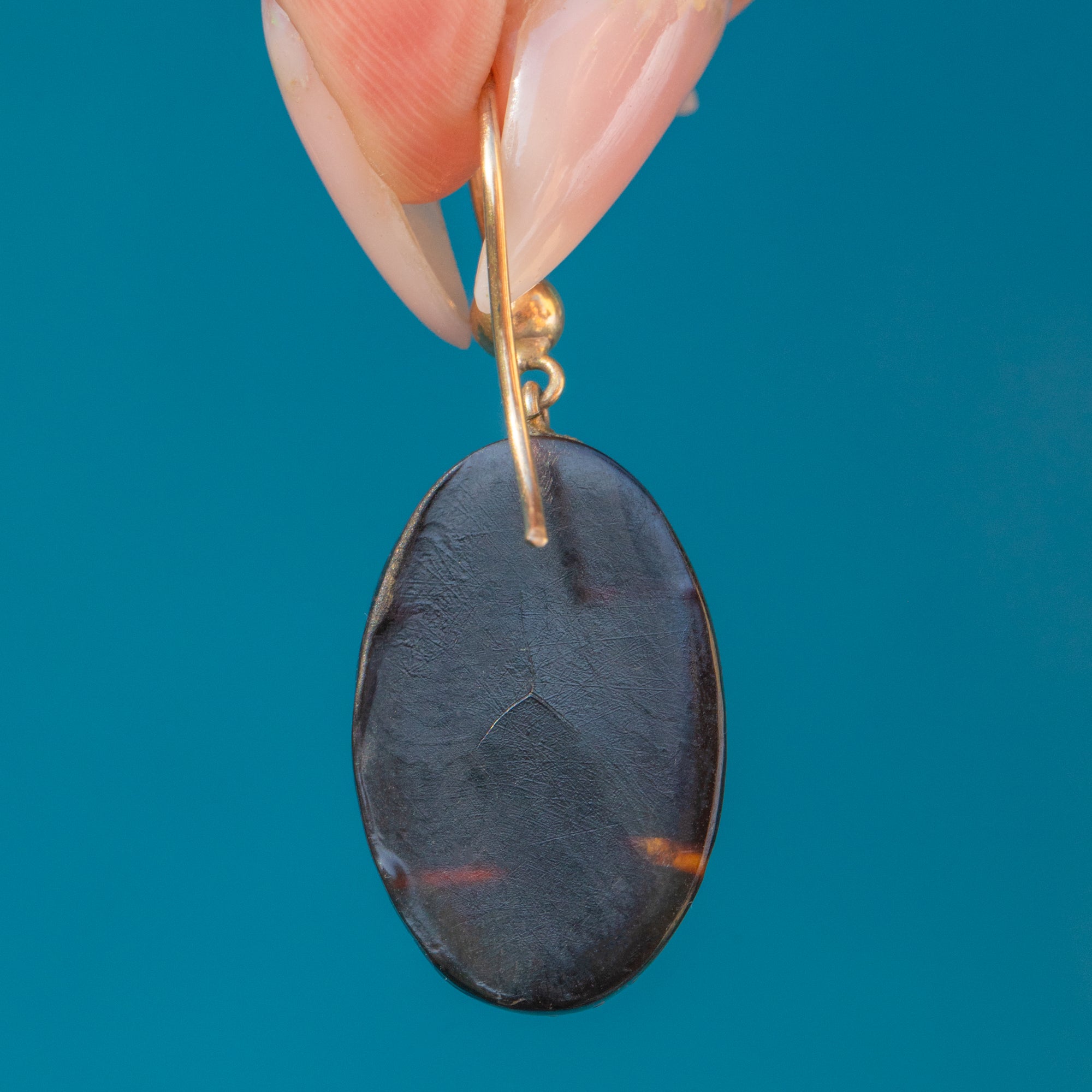 MATERIALS: Tests as 9ct Gold Hooks, with Gold and Silver Piqué inlay, Piqué.