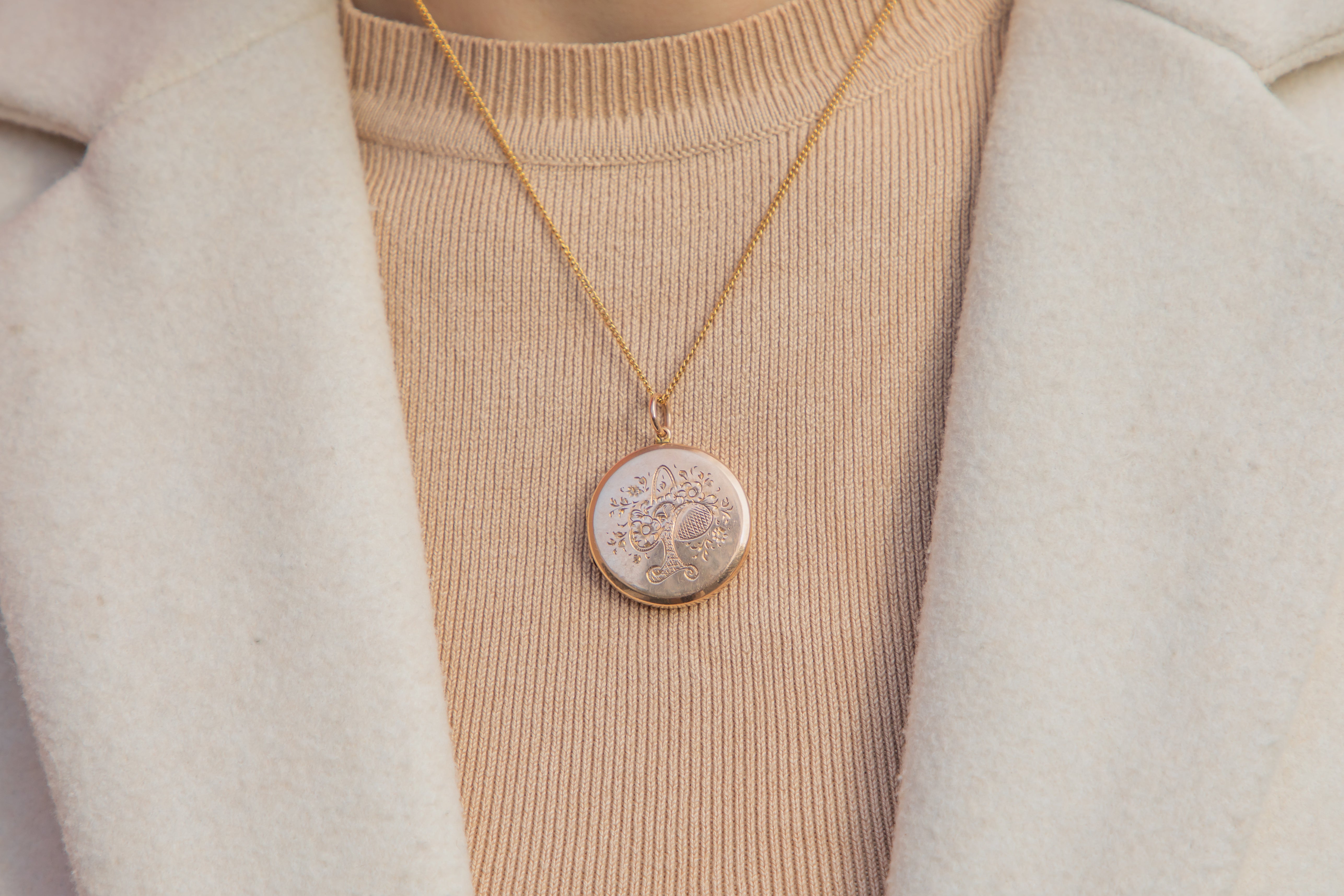 VERY GOOD-EXCELLENT:  This Victorian 9ct Gold round 'bouquet of flowers' locket is in sublime condition for her age. All of the engravings are crisp, with no signs of major wear to the locket at all, apart from some subtle surface wear commensurate with age. A rare find, inside she boasts three frames, and there is no need to worry about security as she shuts with a resounding "click". As pretty as a picture and bursting with sentiment, this Victorian locket would be our top pick.