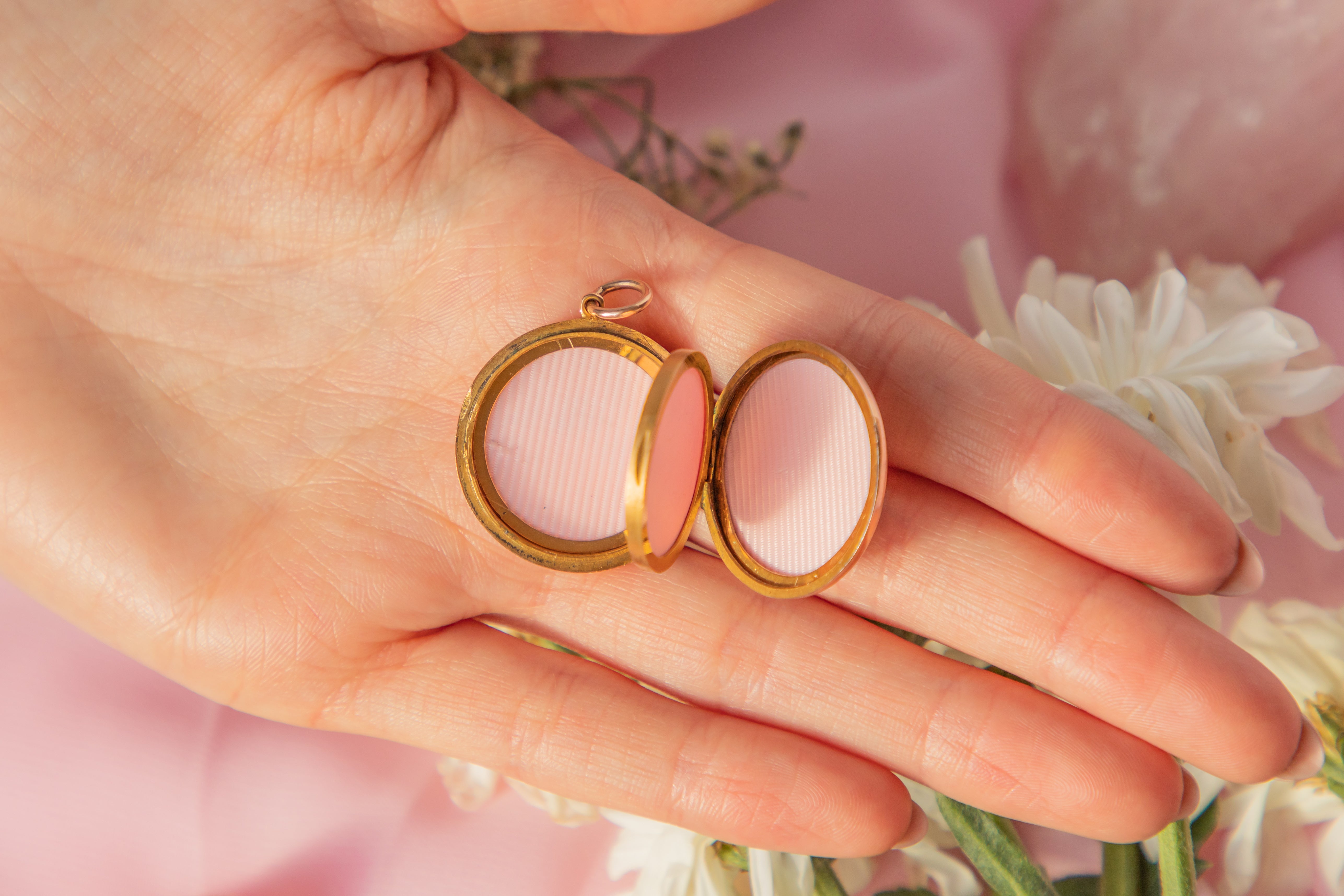 As you open this antique Gold locket, a fabulous surprise awaits inside! She boasts three frames with space for up to four images, so you can keep all precious family members or friends close at all times.