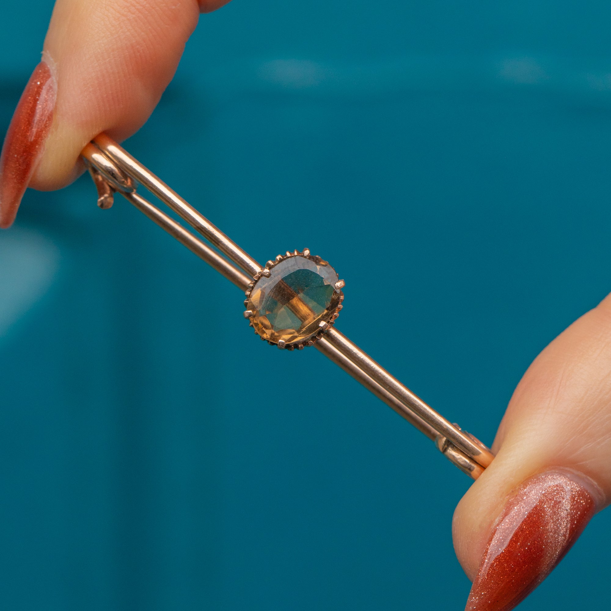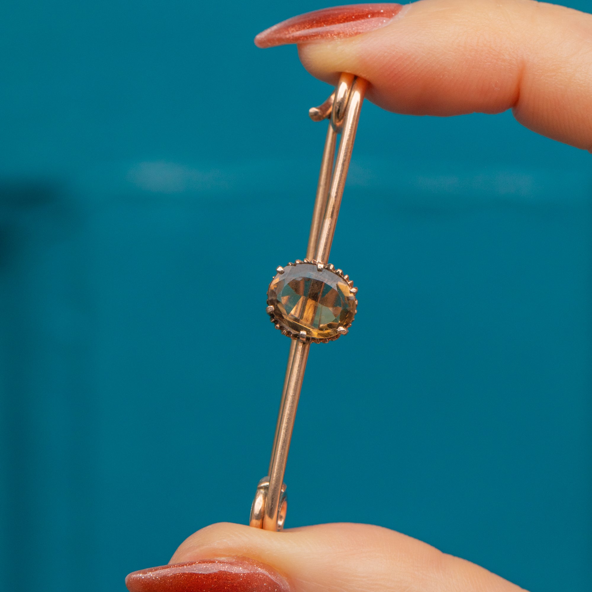 Crafted from a rosy-hued 9ct Gold, this Victorian stock pin boasts a 1.25ct Amoky Quartz in her centre. She is faceted wonderfully, radiating gorgeous caramel hues as she catches the light.