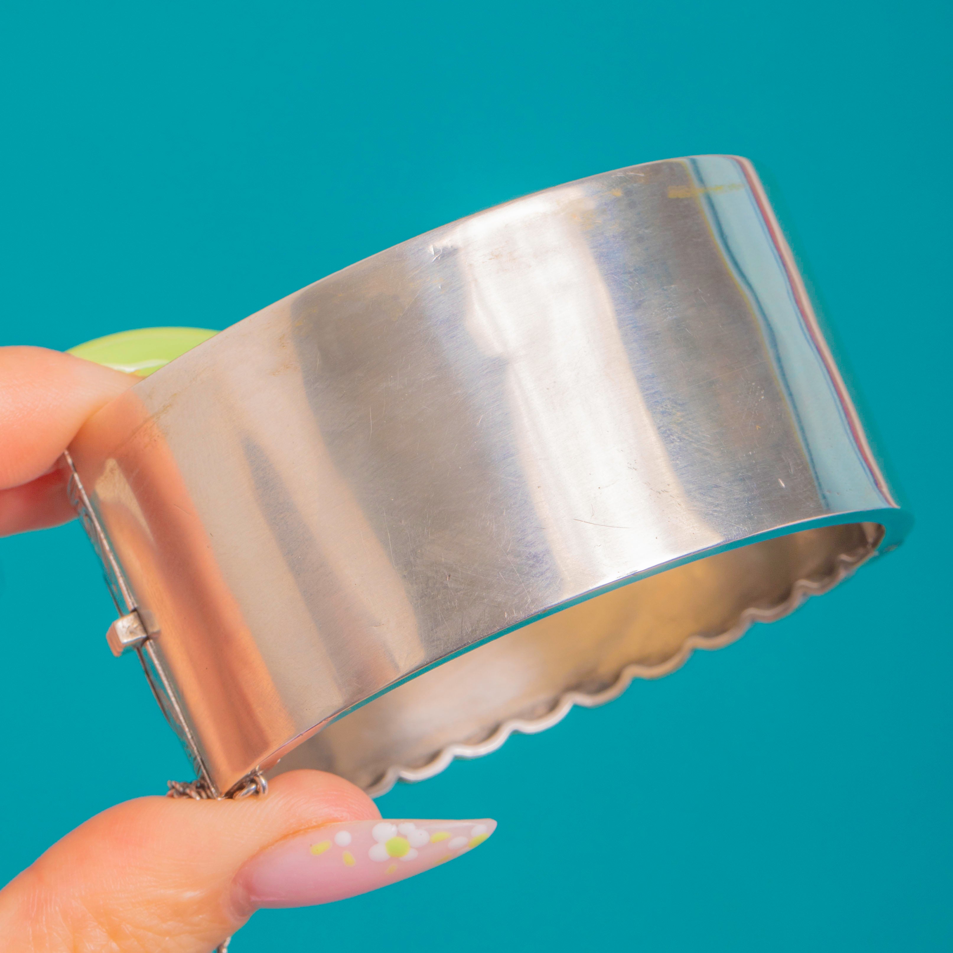Bold in presence yet refined in its hand-worked textures, the bracelet closes with a secure box clasp and is fitted with a safety chain for added confidence in wear. A statement piece that captures the elegance and craftsmanship of the 19th century.