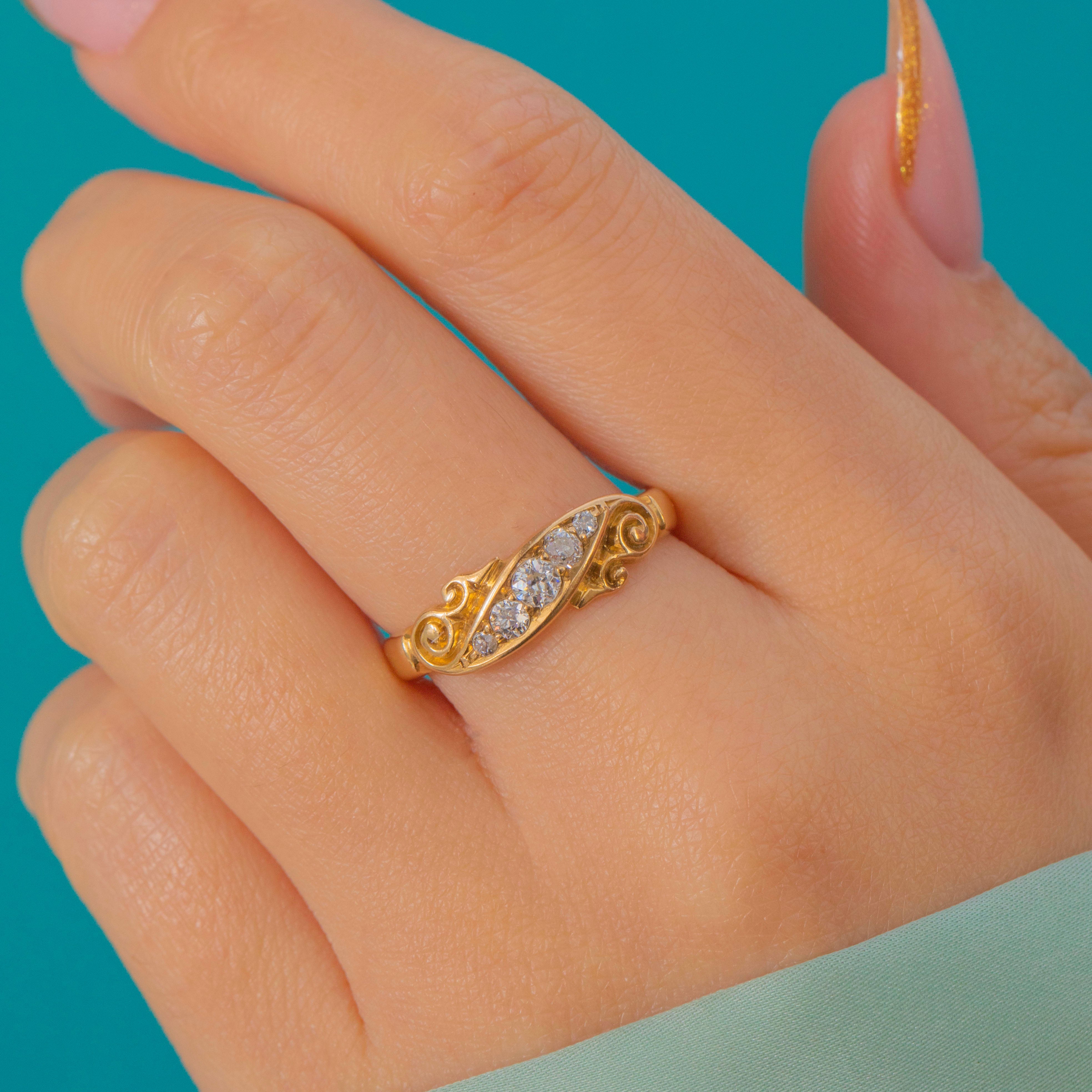 Victorian 18ct Gold Carved Diamond Five Stone Ring 0.25ct c.1900