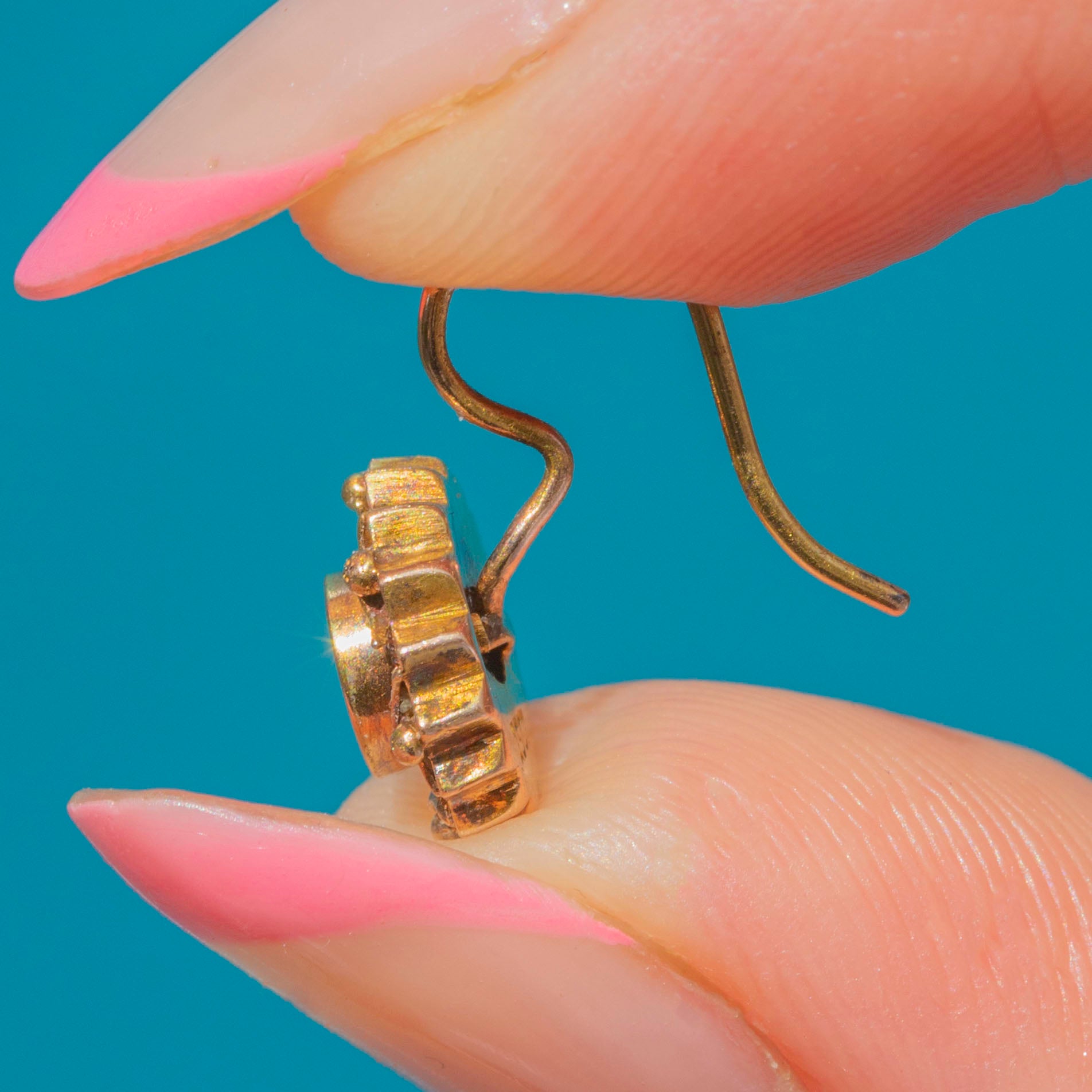 Victorian Etruscan Revival 15ct Gold Diamond Earrings