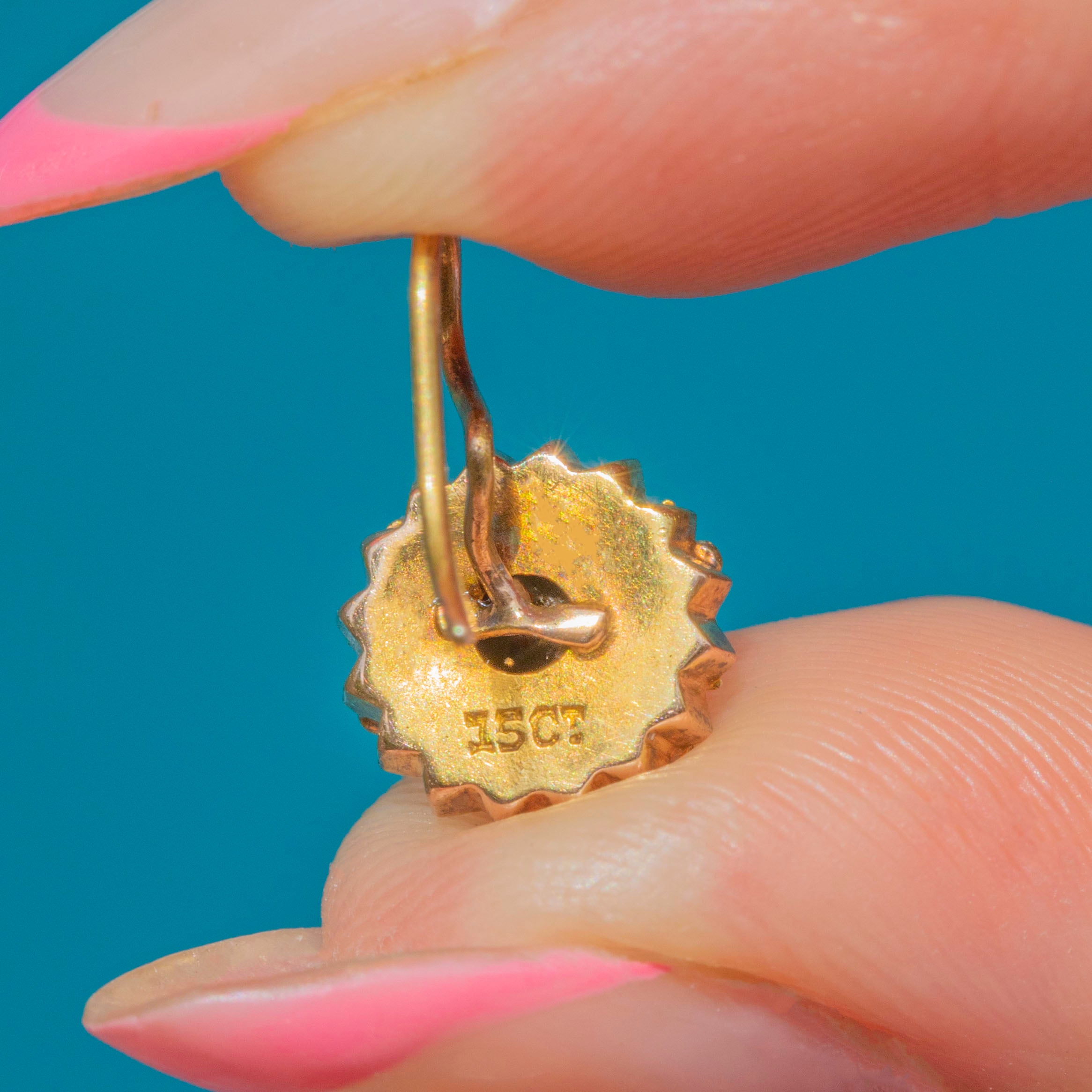 STAMPS: 15CT on back of earrings