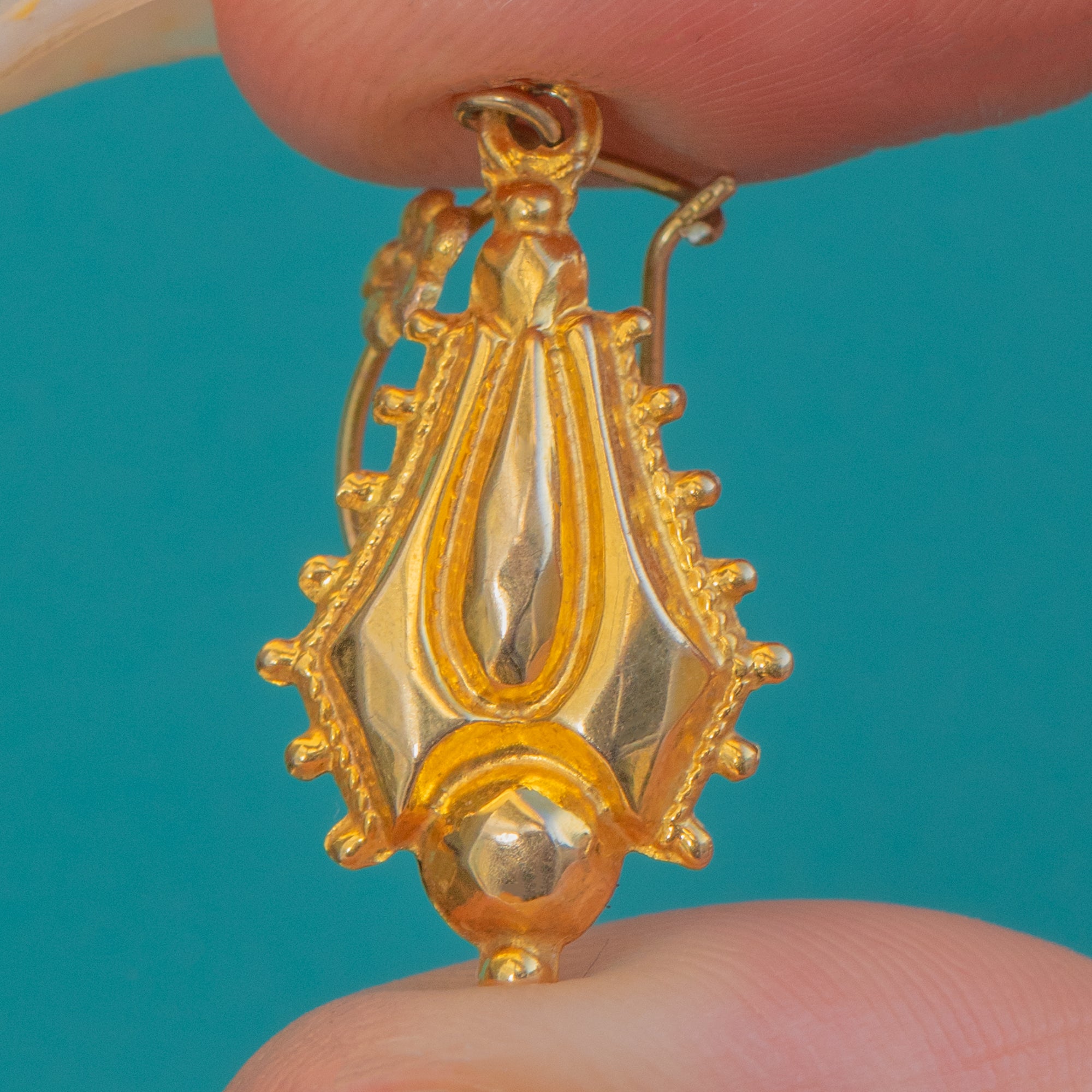 Victorian Etruscan Revival 9ct Gold Torpedo Earrings
