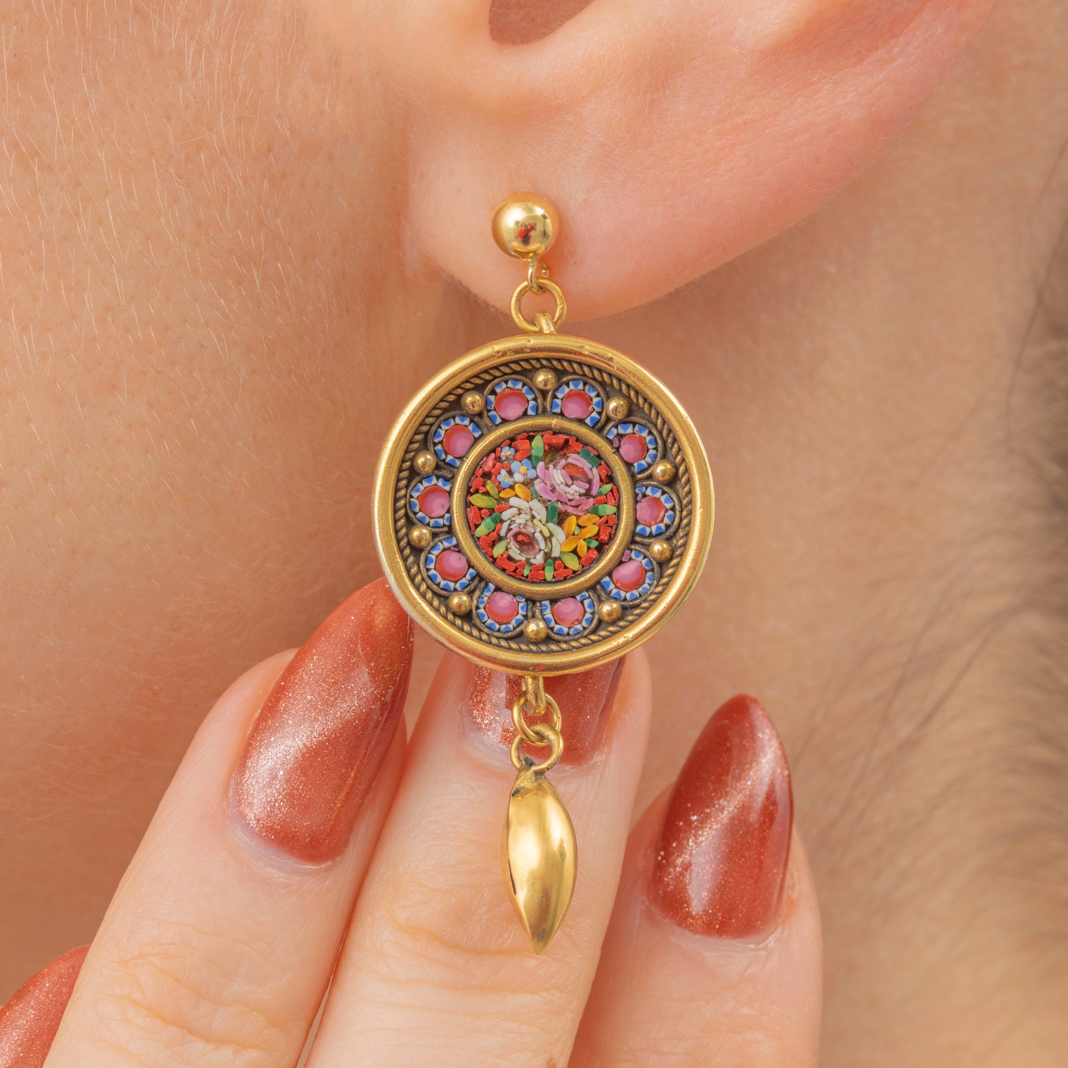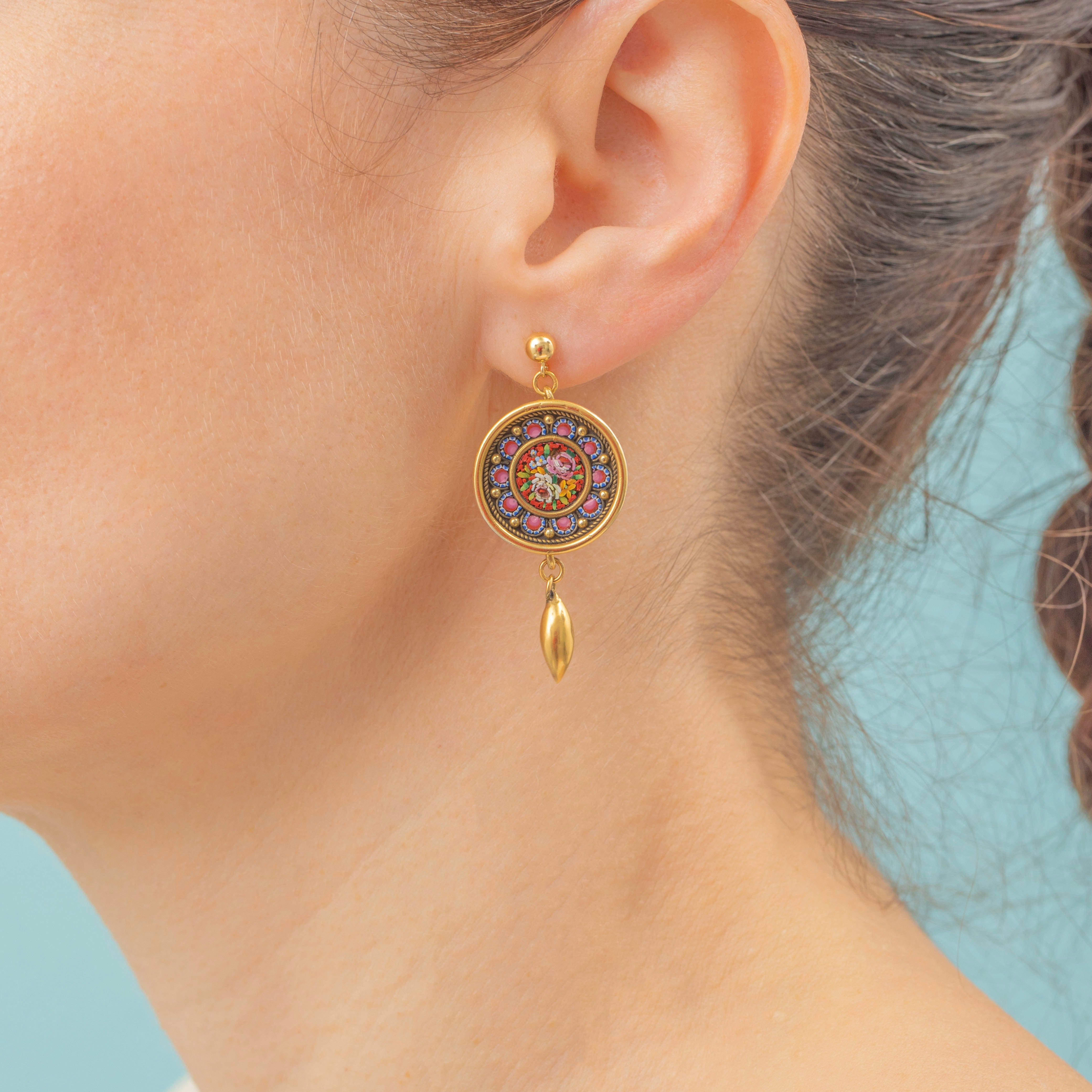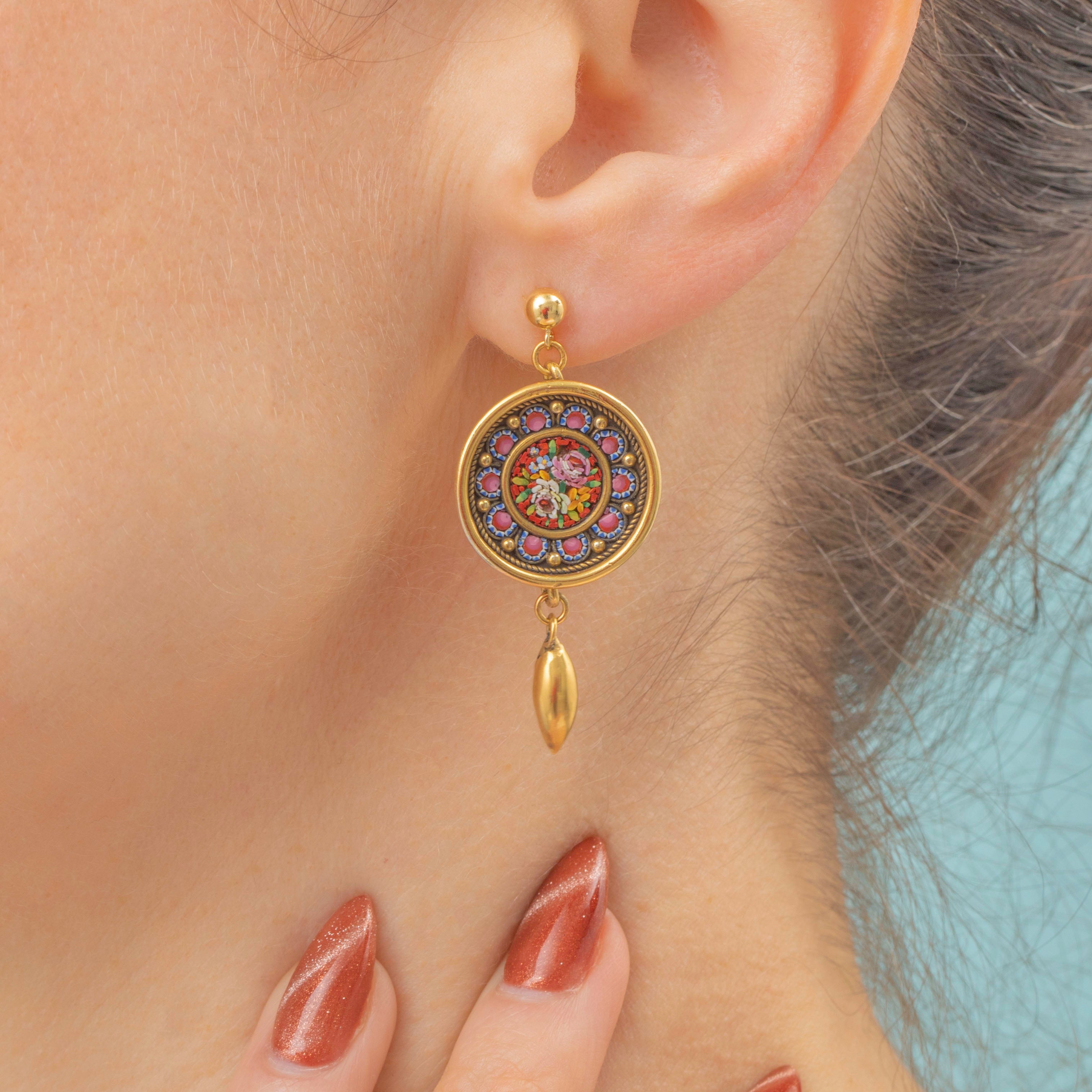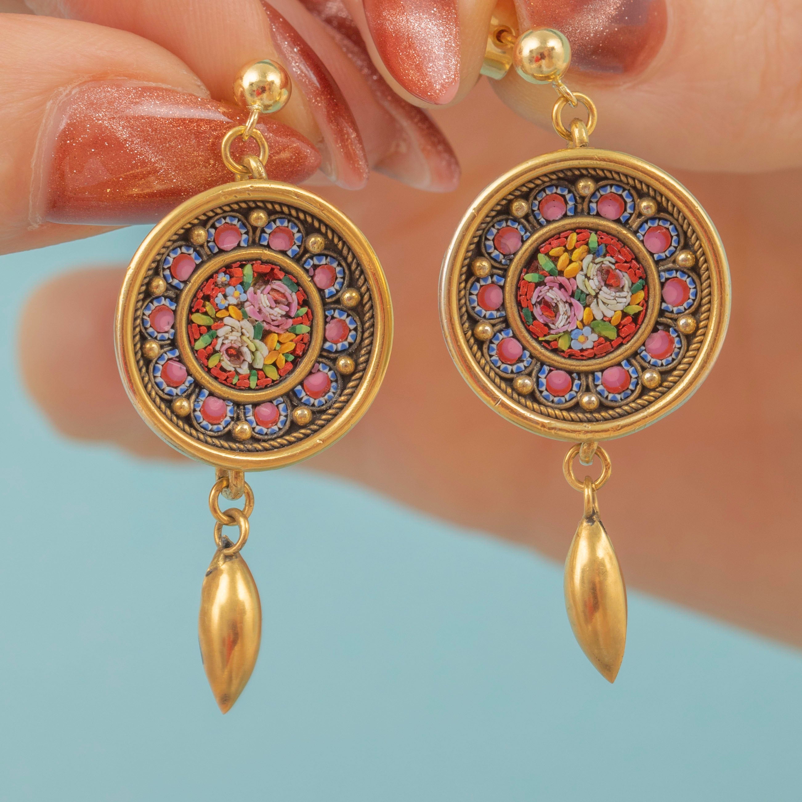 Victorian Floral Micro Mosaic Drop Earrings- 18ct Hooks