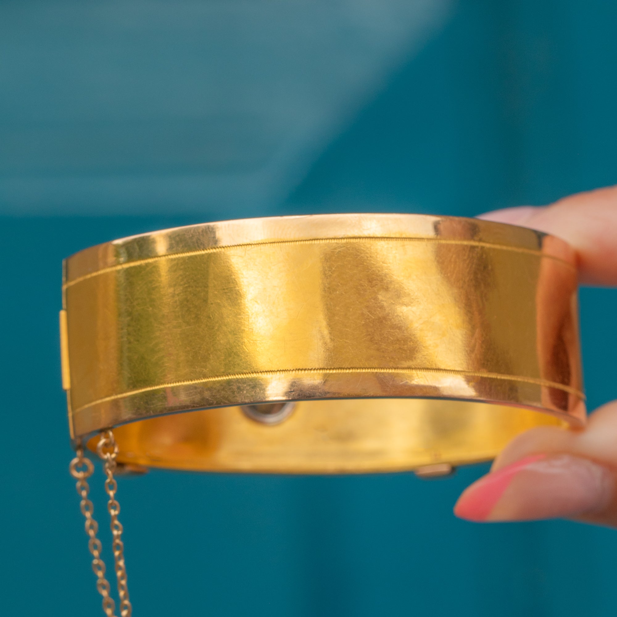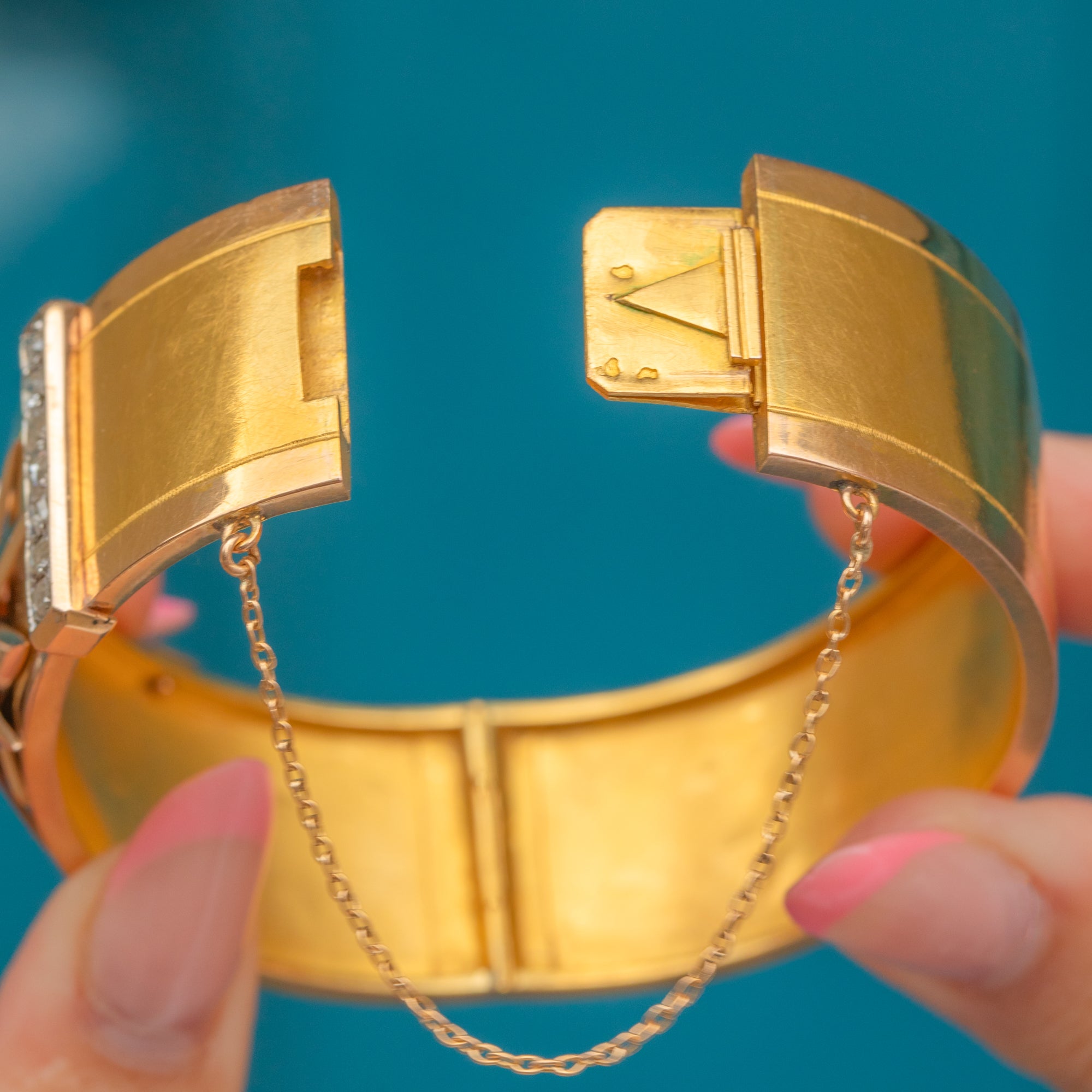 The Diamonds are all present and securely set, providing a wonderful sparkle, and are free from chips. The largest is 0.60cts old mine and absolutely dazzling! The bangle closes securely with a click, requiring a gentle push, and the clasp tongue is stamped with the French Eagle's head.  You will feel like a million dollars wearing this bangle!