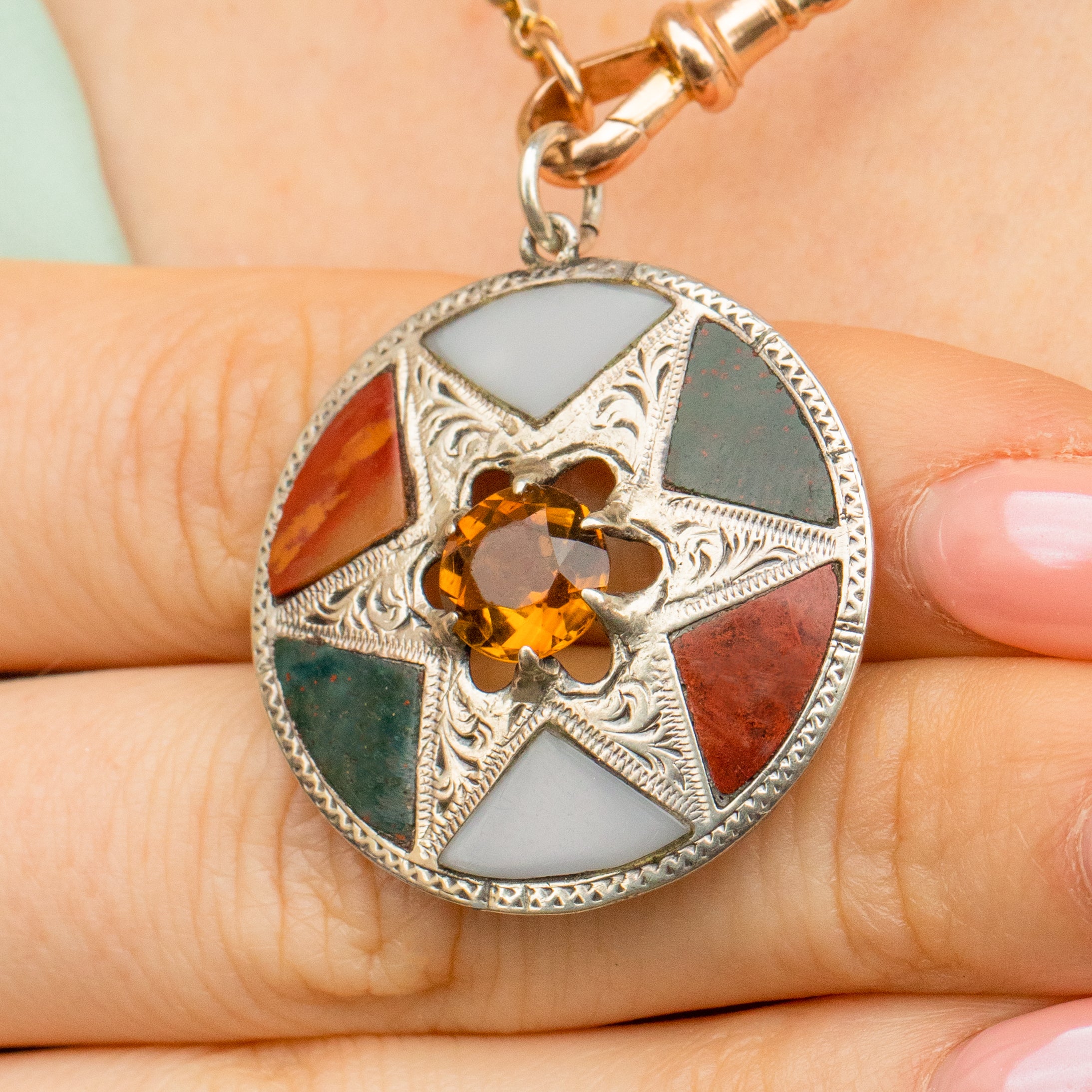 Victorian Scottish Agate Citrine Round Pendant, 1.00ct