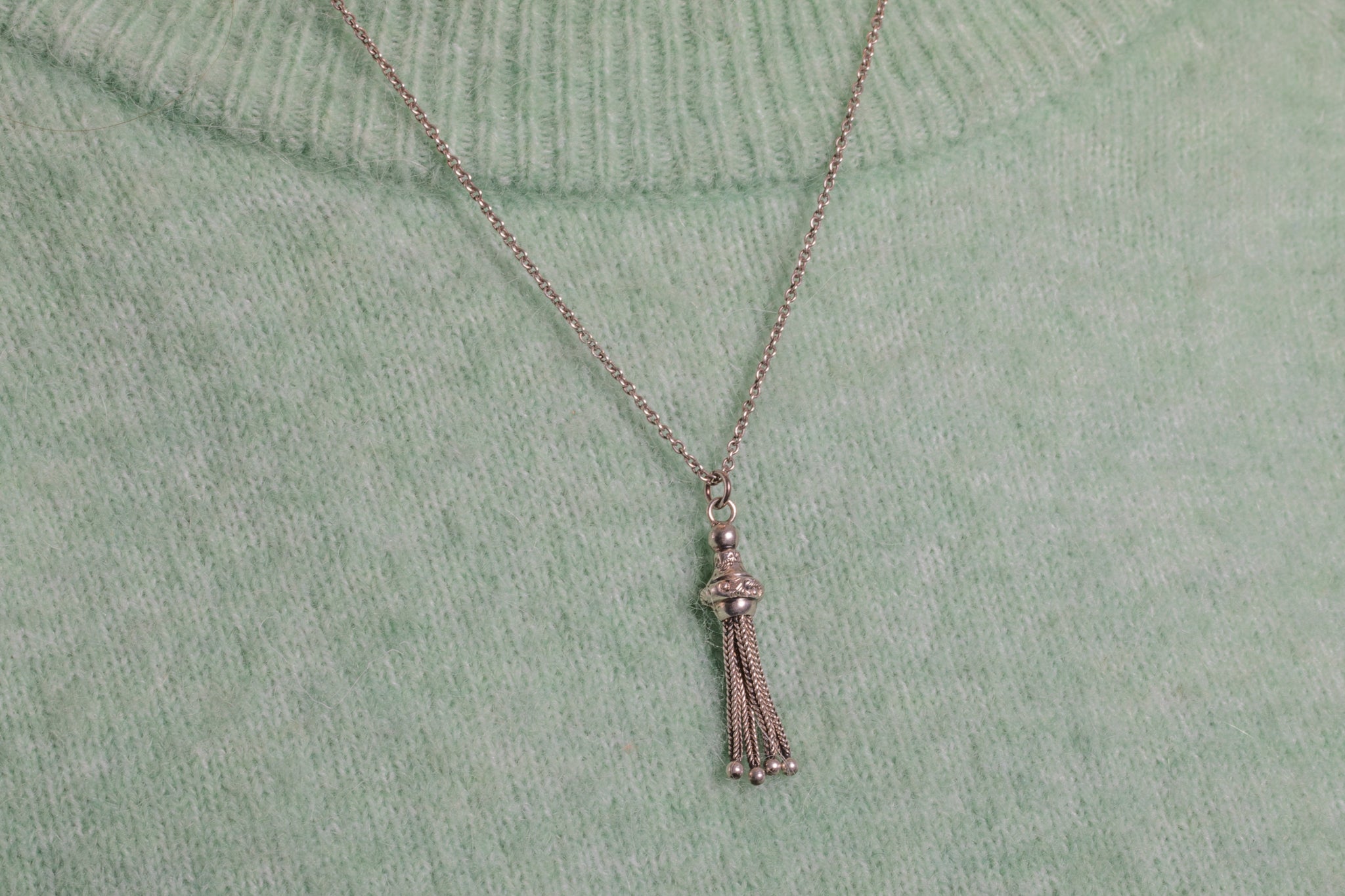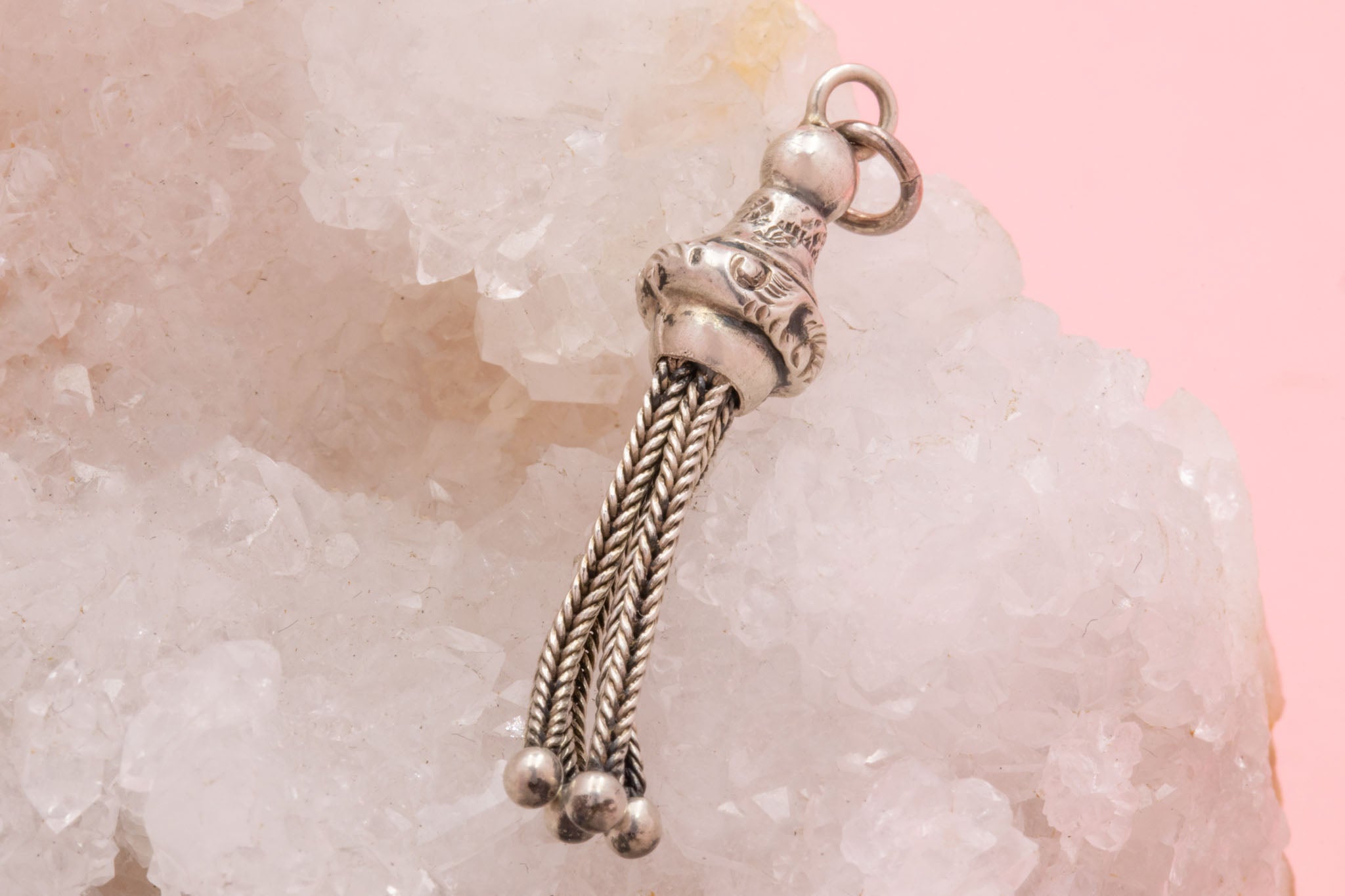 This Victorian Silver tassel pendant is so sweet and would certainly be a fun addition to your antique jewellery collection! Dainty yet perfectly formed, she boasts four slinky tassels which elegantly suspend from her ornate Silver top.