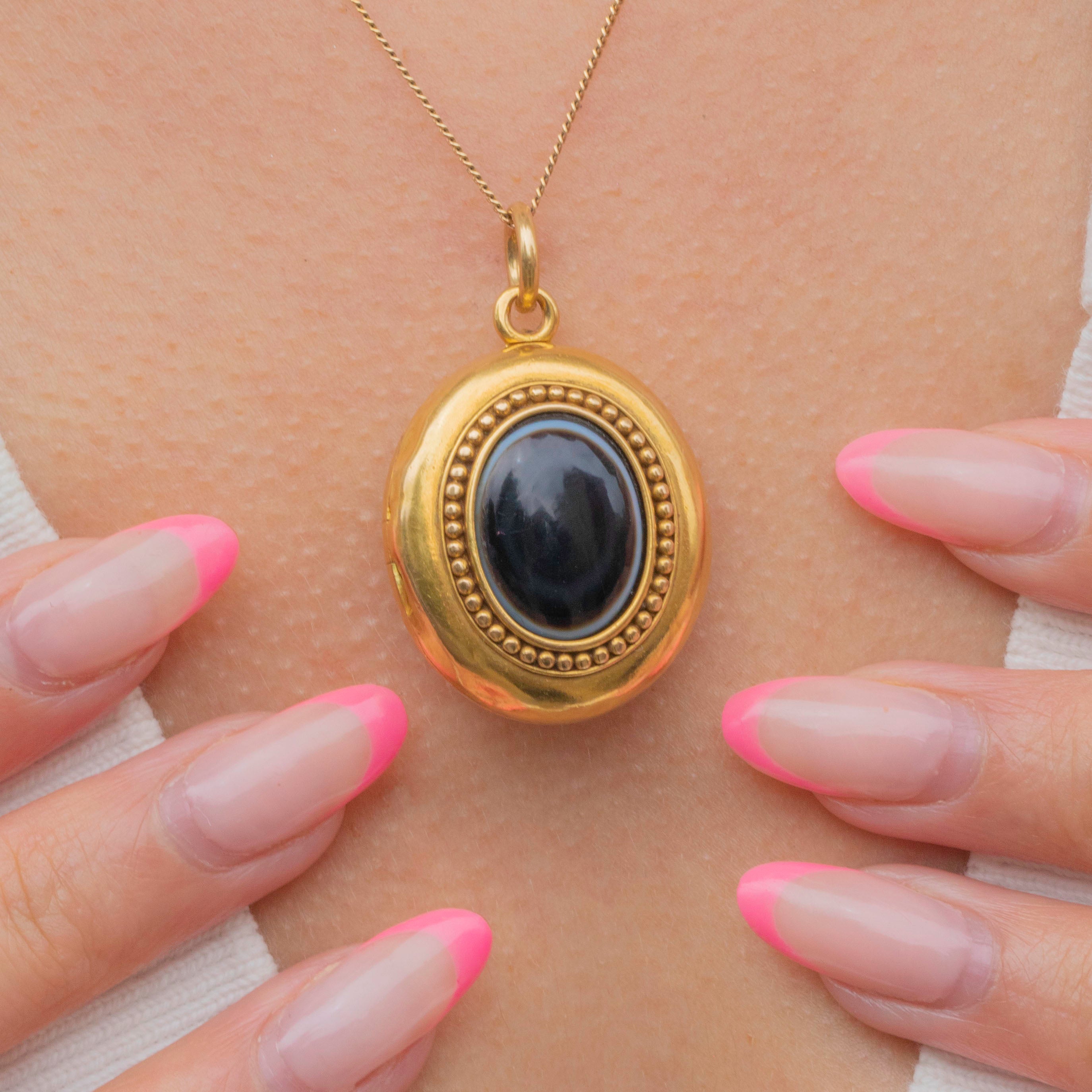 This sumptuous Victorian solid 18ct Gold Banded Agate anchor locket will make the perfect abode for your most cherished photograph! Crafted from richly saturated, solid 18ct Gold with a decadent satin finish, this antique locket is a chubby delight and feels satisfying resting against the chest.