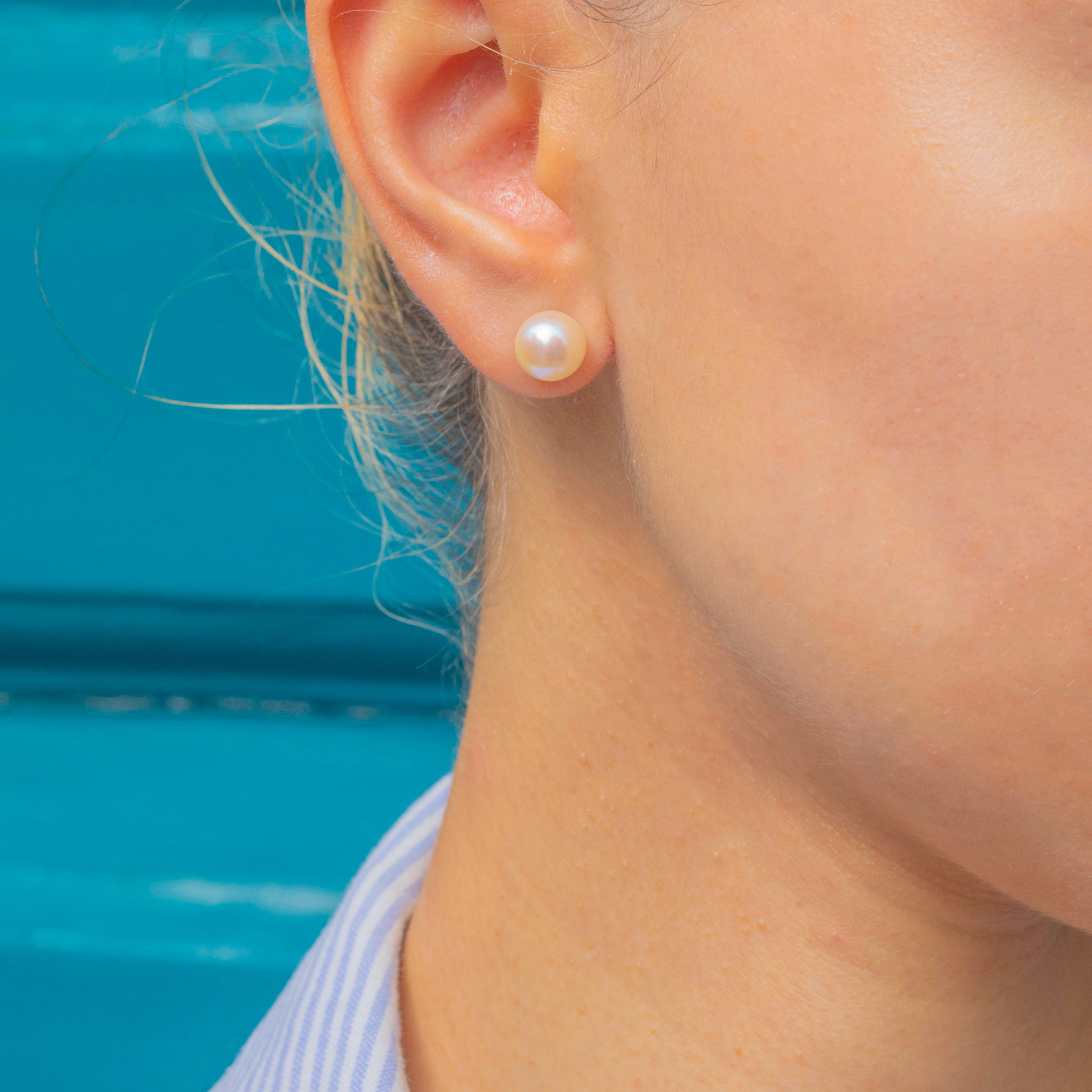 Classic and elegant, these vintage stud earrings feature lustrous 8.5mm Pearls mounted on secure 18ct Gold fittings. The Pearls display a beautiful soft sheen, adding timeless sophistication to any look.