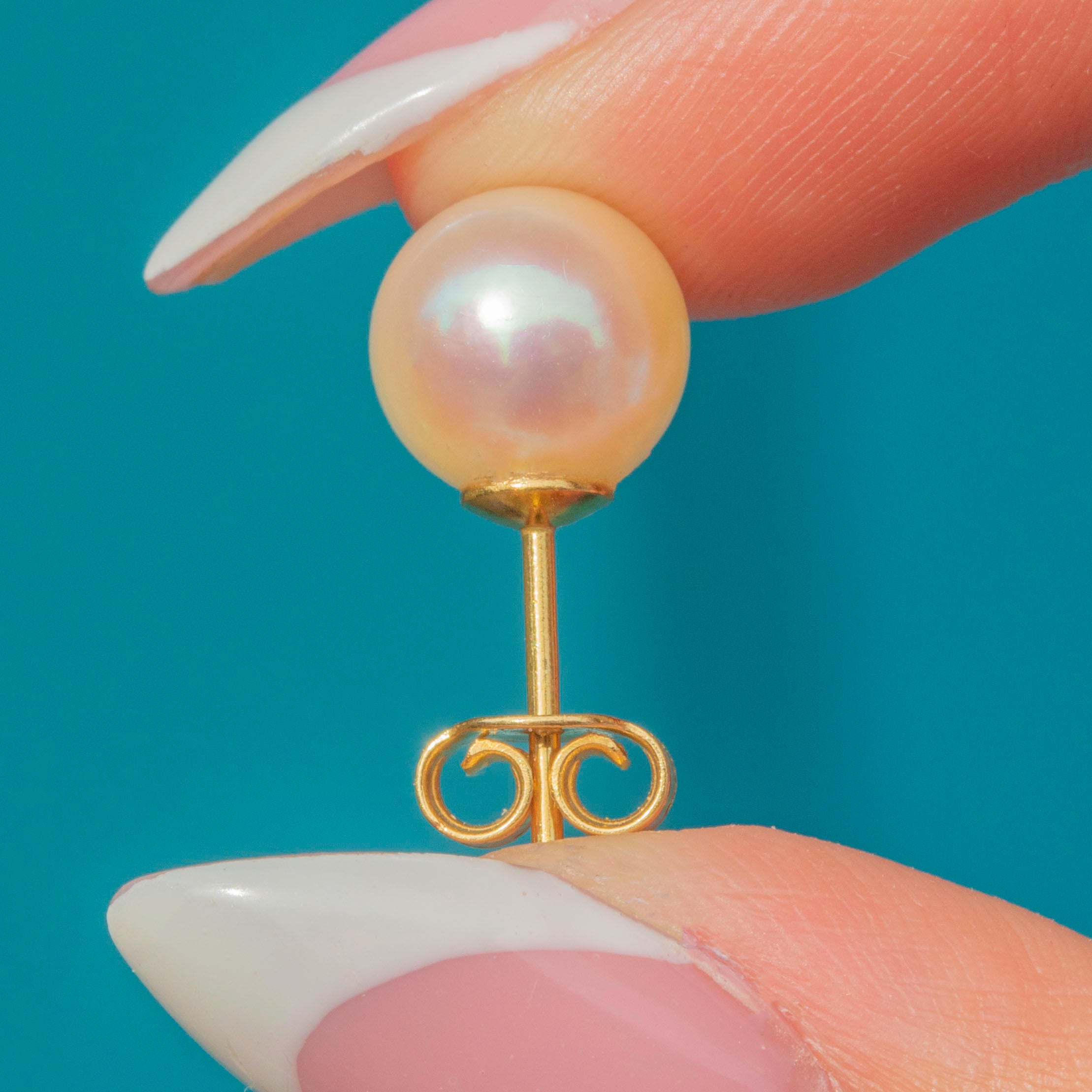 Vintage 18ct Gold Pearl Stud Earrings - 8.5mm