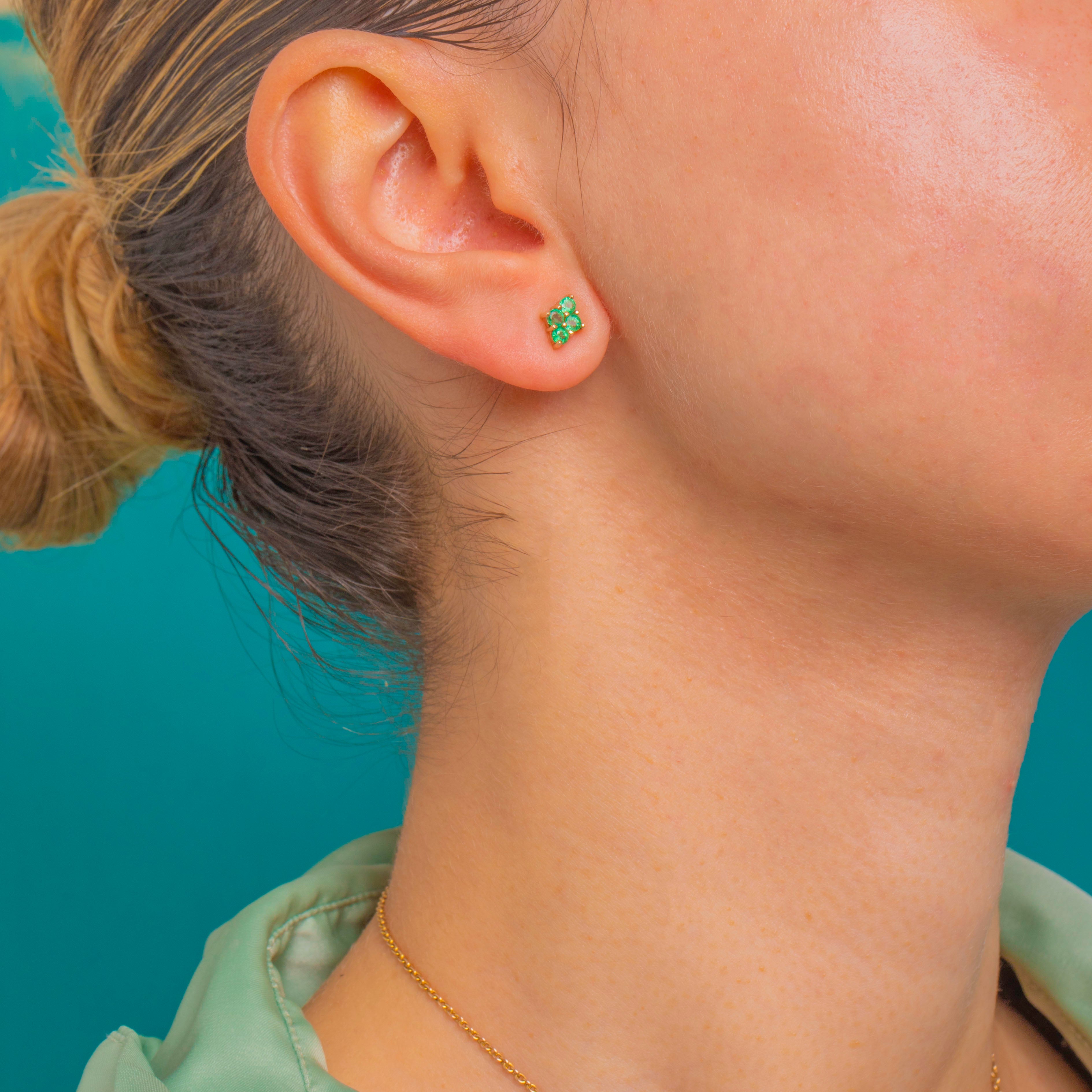 Perfect for everyday elegance, their warm Yellow Gold and saturated Emerald hue bring a fresh pop to any look. Finished with posts and butterfly backs, they’re a timeless staple with a subtly vintage sensibility.