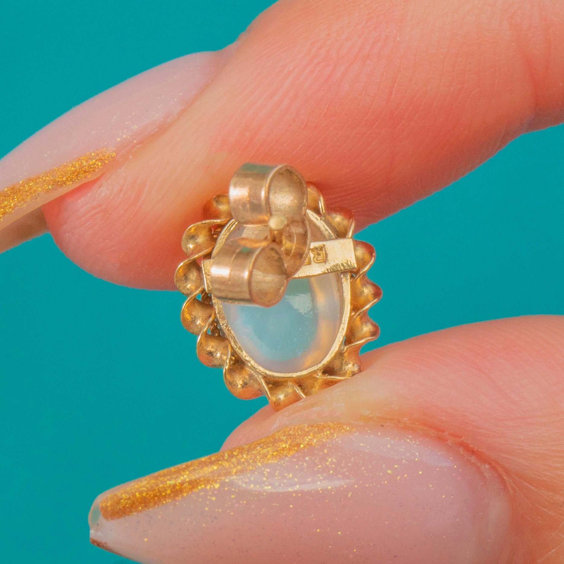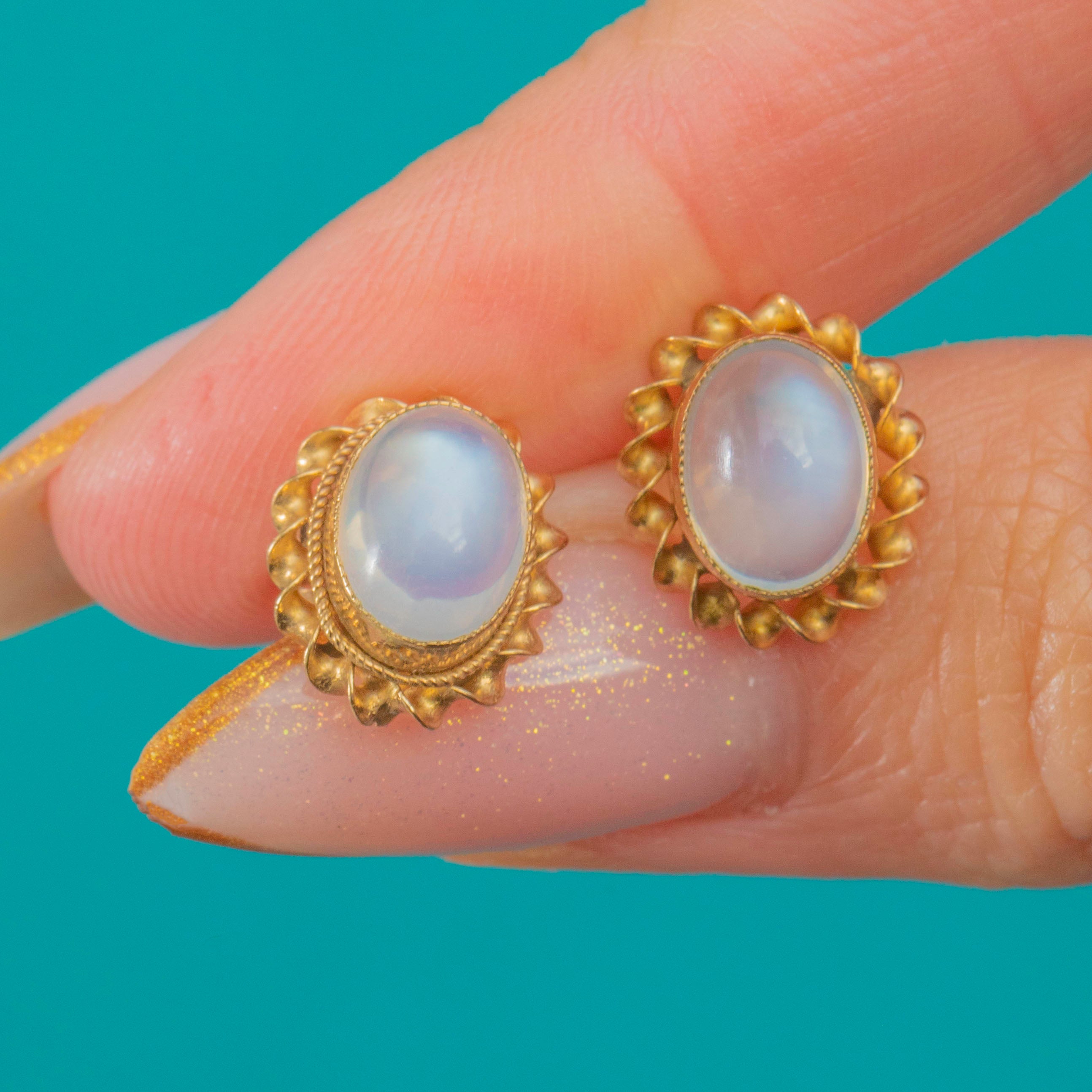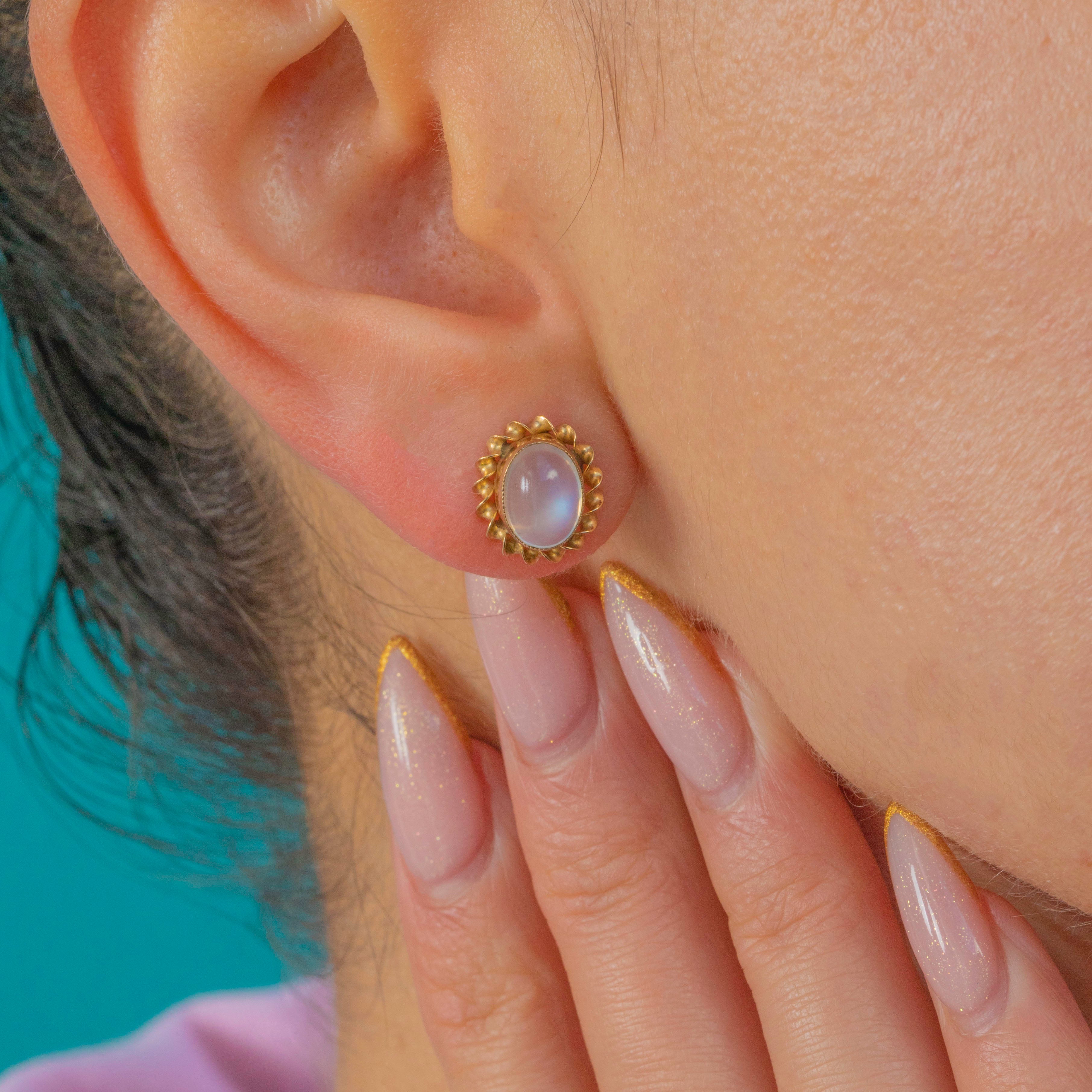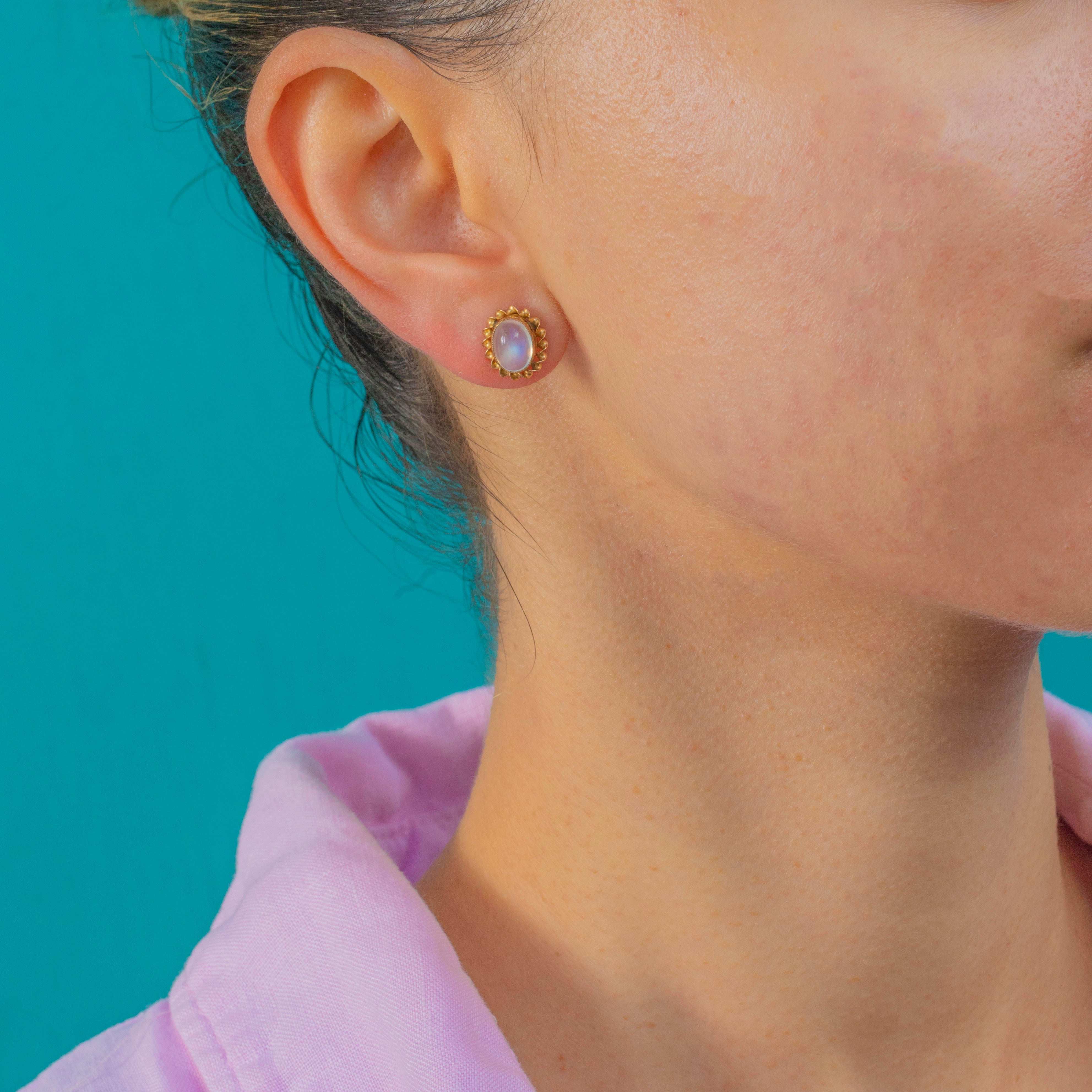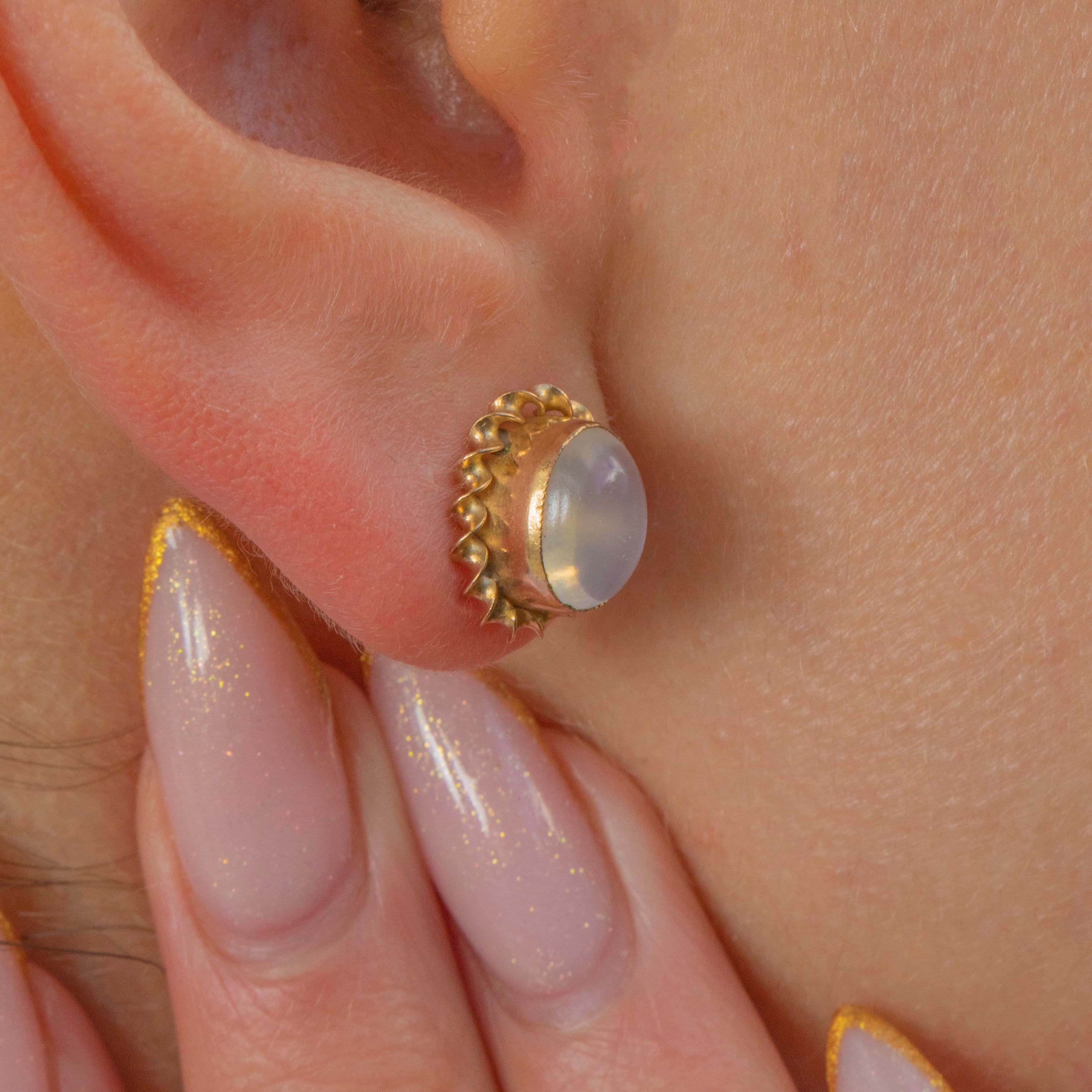 Vintage 9ct Gold Moonstone Cabochon Studs