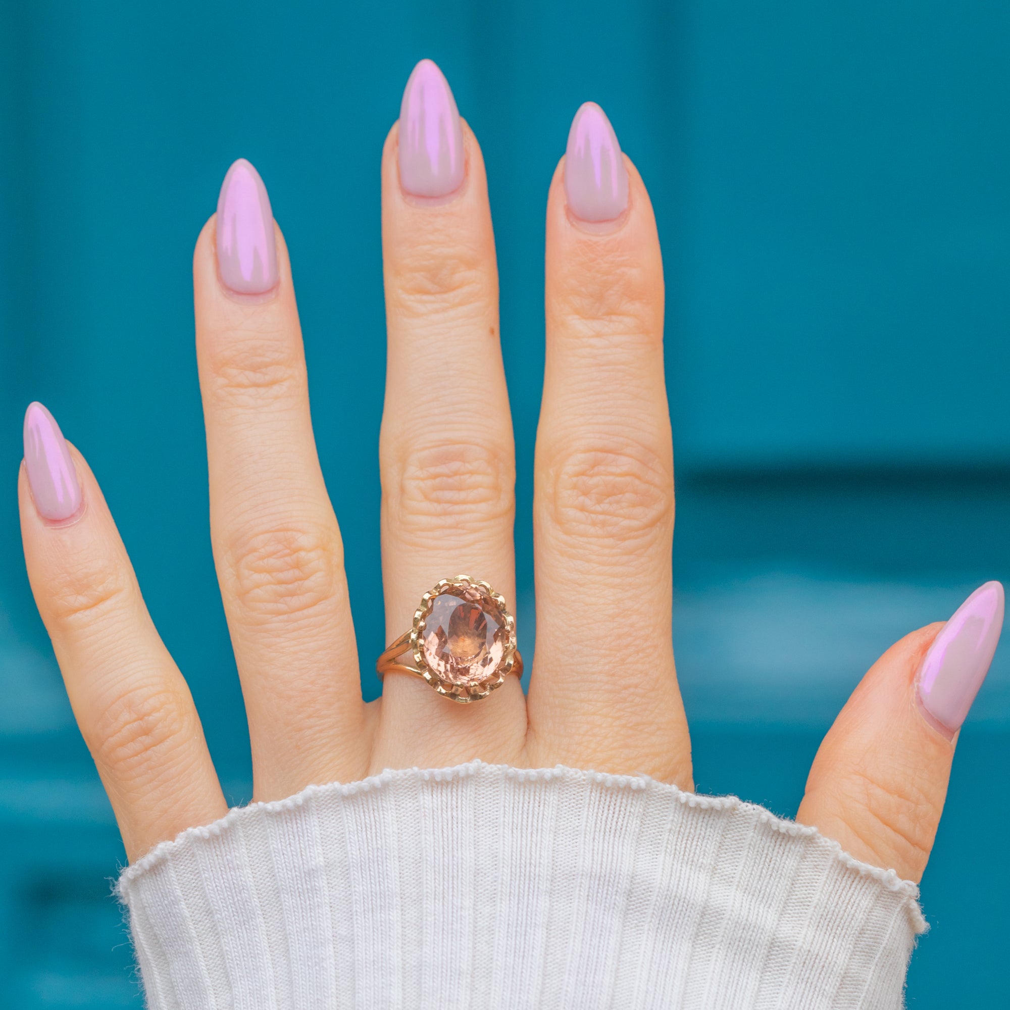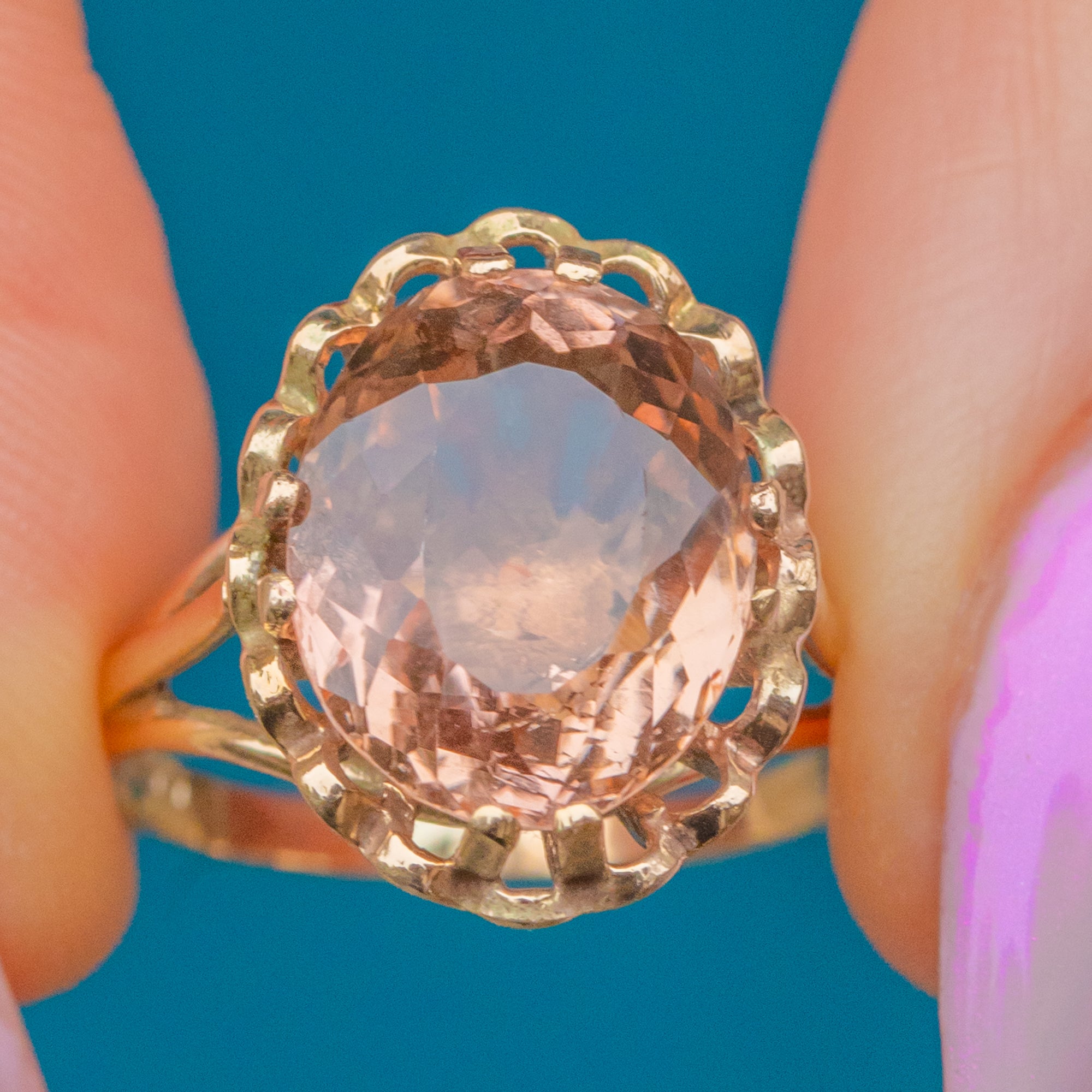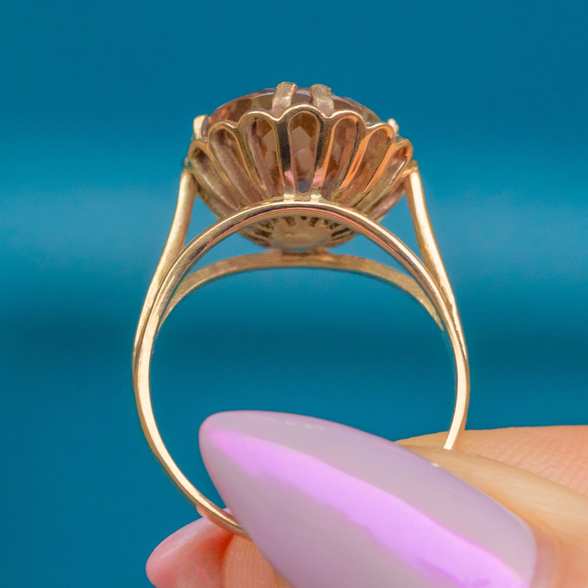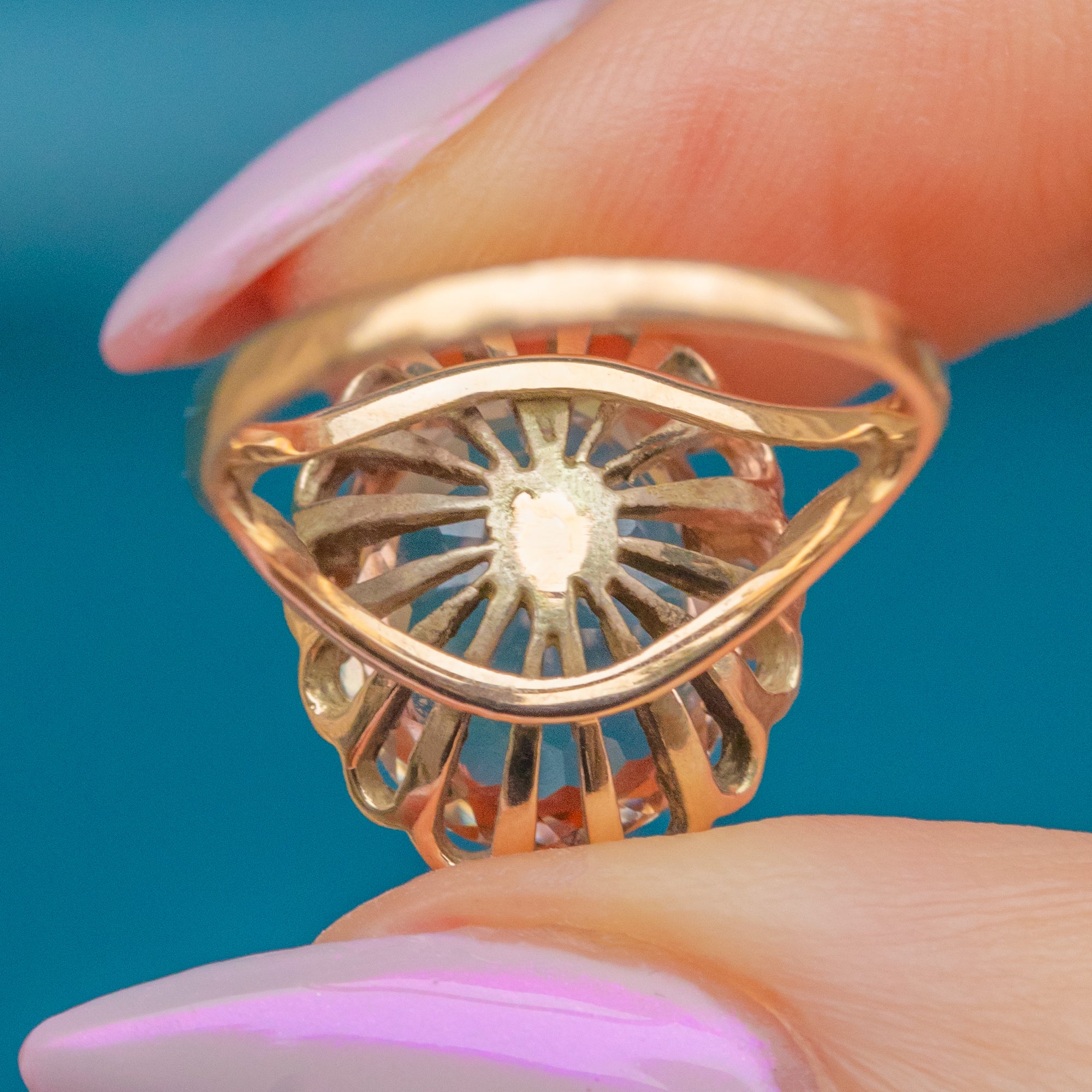 9ct Gold Basket-Set Peach Citrine Cocktail Ring