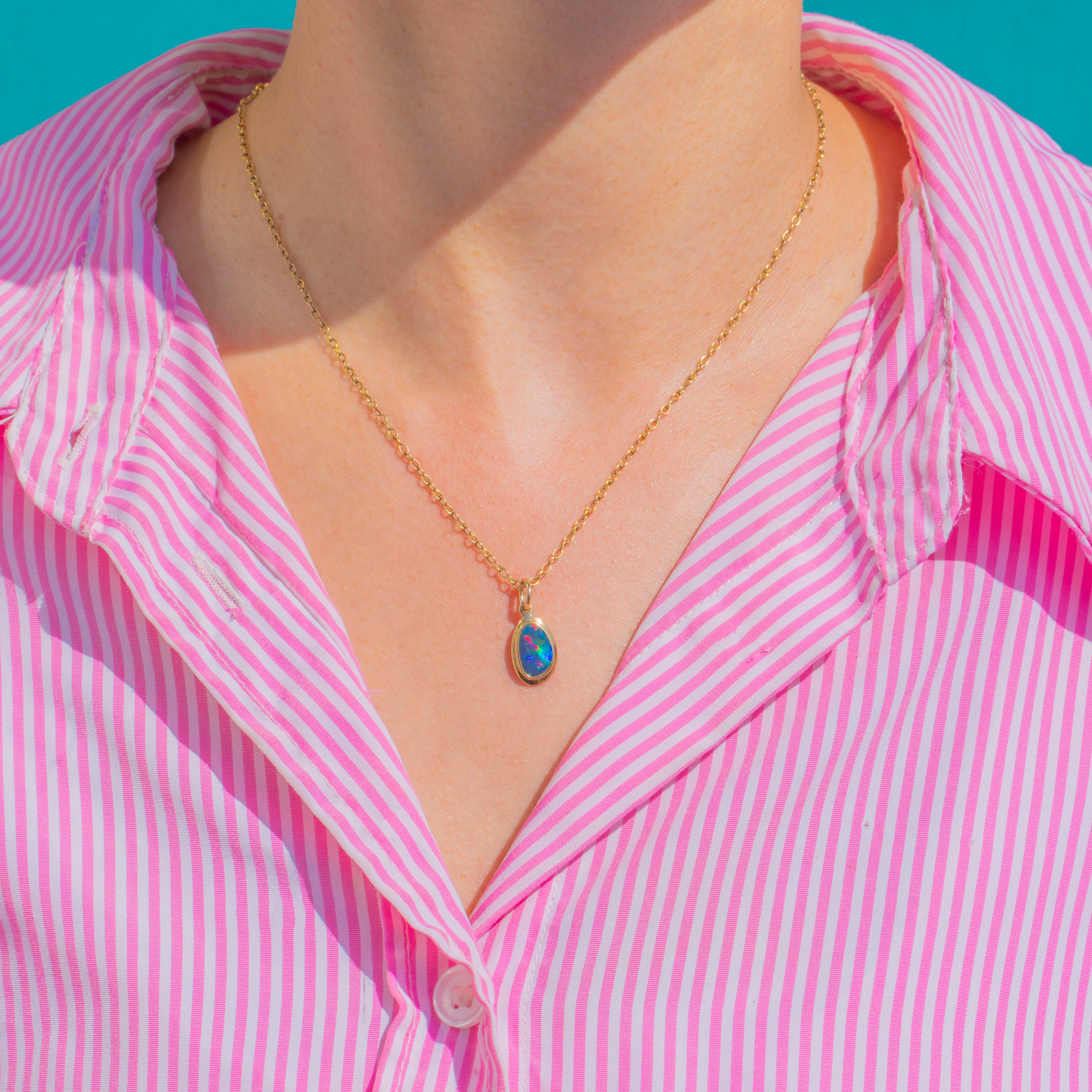Understated and refined, this Vintage pendant offers that perfect pop of colour for every day. The warm Gold and clean silhouette let the Opal’s natural fire take centre stage, making it beautiful worn solo or layered with your favourites.